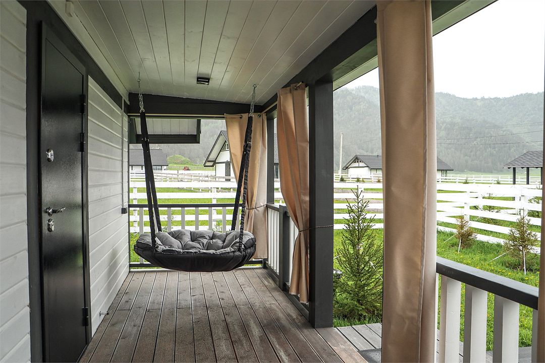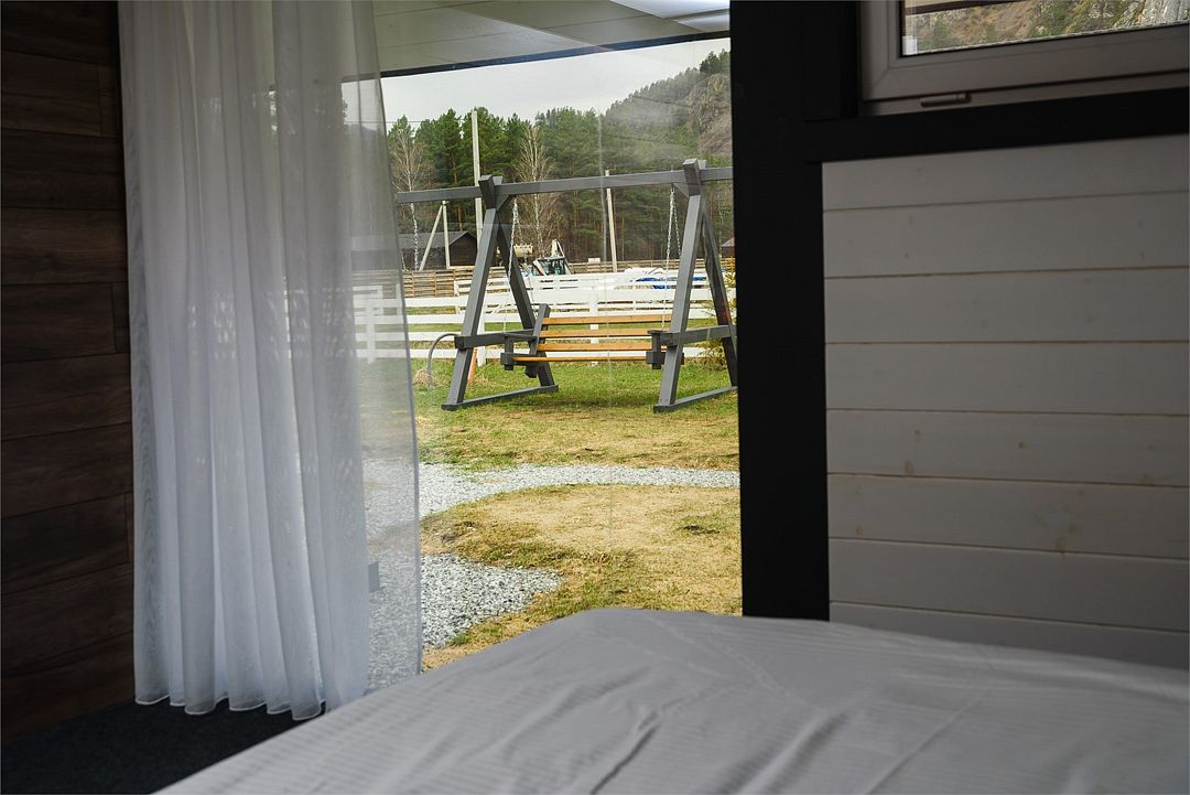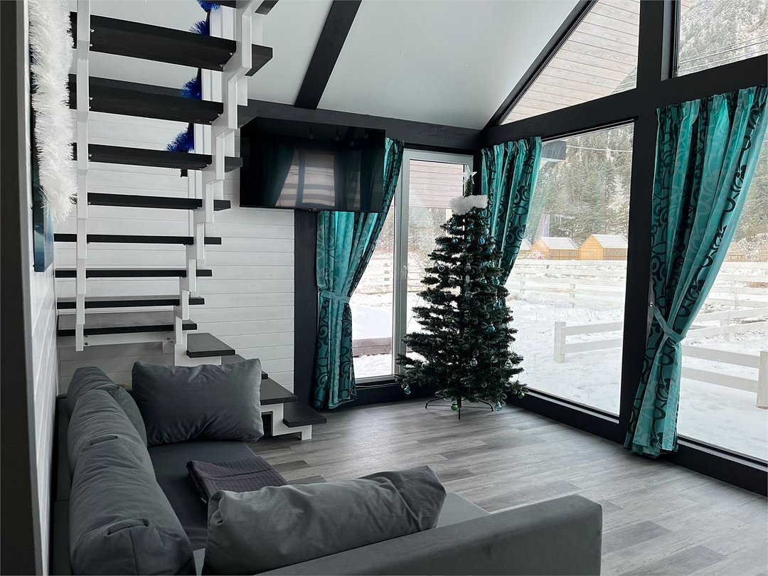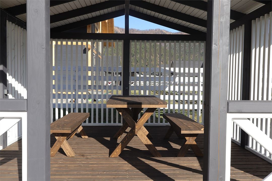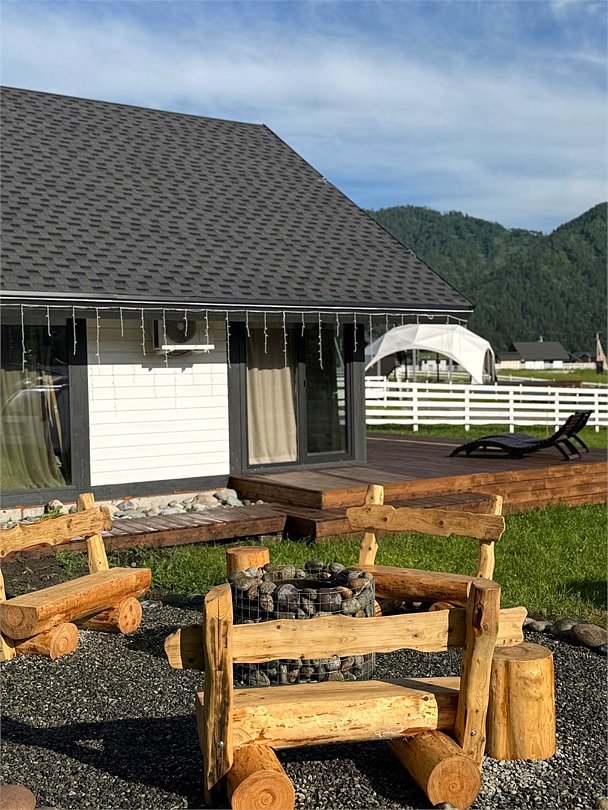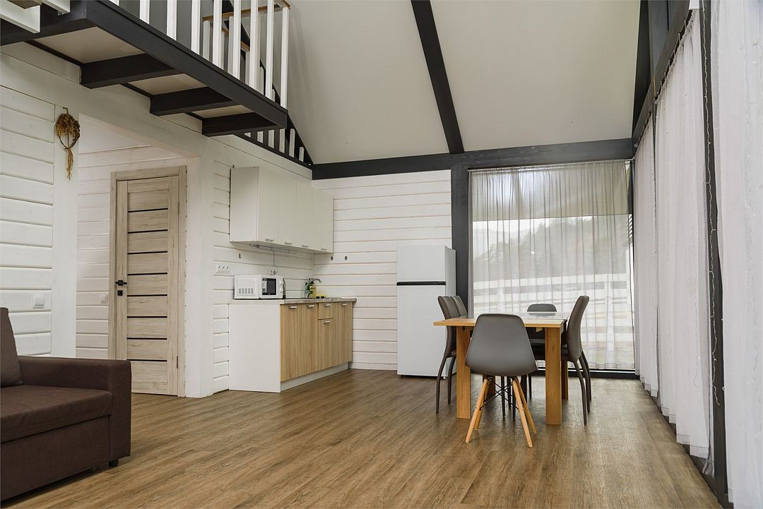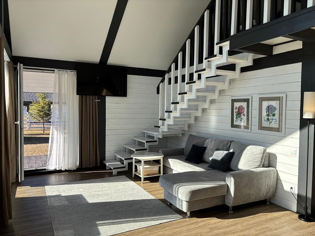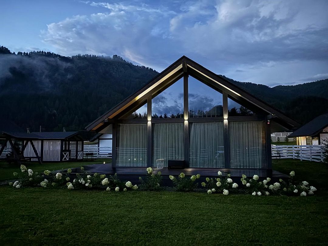Комплекс включает в себя стильные двухэтажные коттеджи, у каждого есть собственный огороженный участок. В домах имеется все необходимое как для краткосрочного, так и для длительного проживания: объединенная с гостиной кухня, оборудованная техникой и посудой, уютные спальни, ванная комната с душевой кабиной, феном и туалетные принадлежностями. В каждом коттедже своя терраса, откуда открываются красивые виды. Для любителей мяса на углях на участке оборудована мангальная зона и беседка, на некоторых территориях имеются качели и установлены банный чан.
