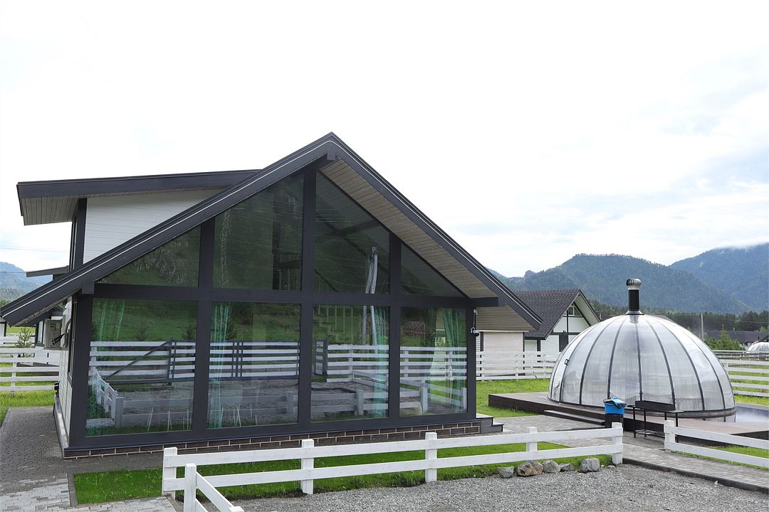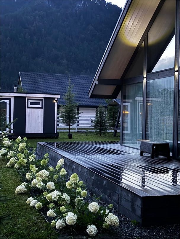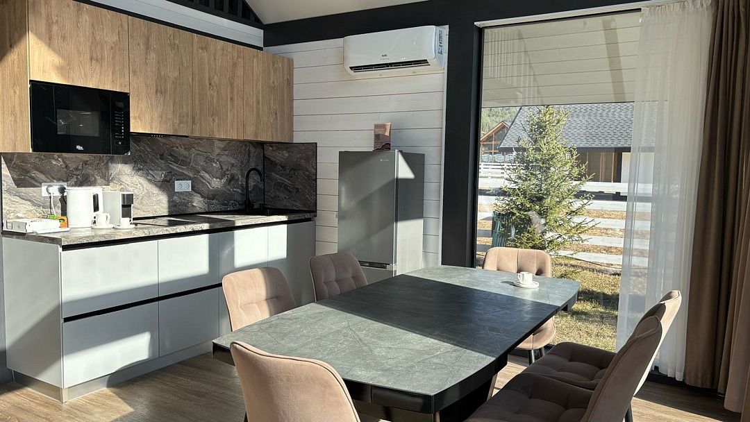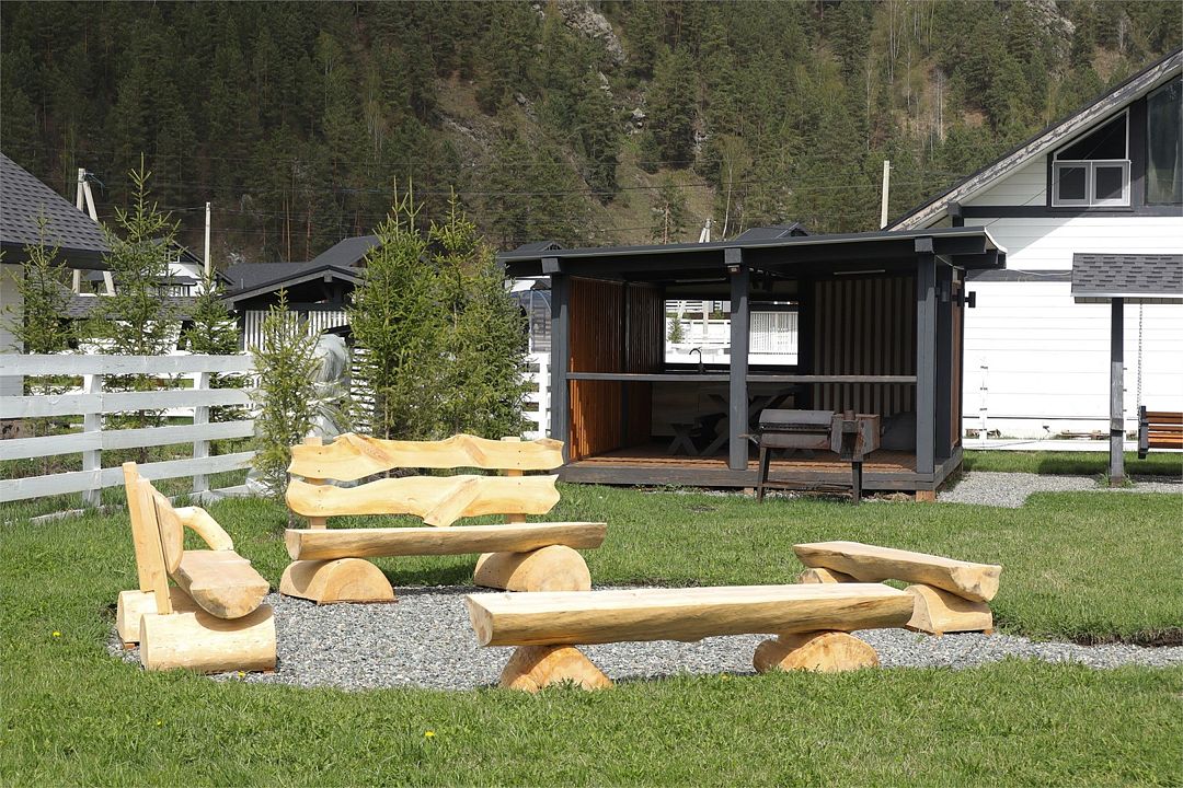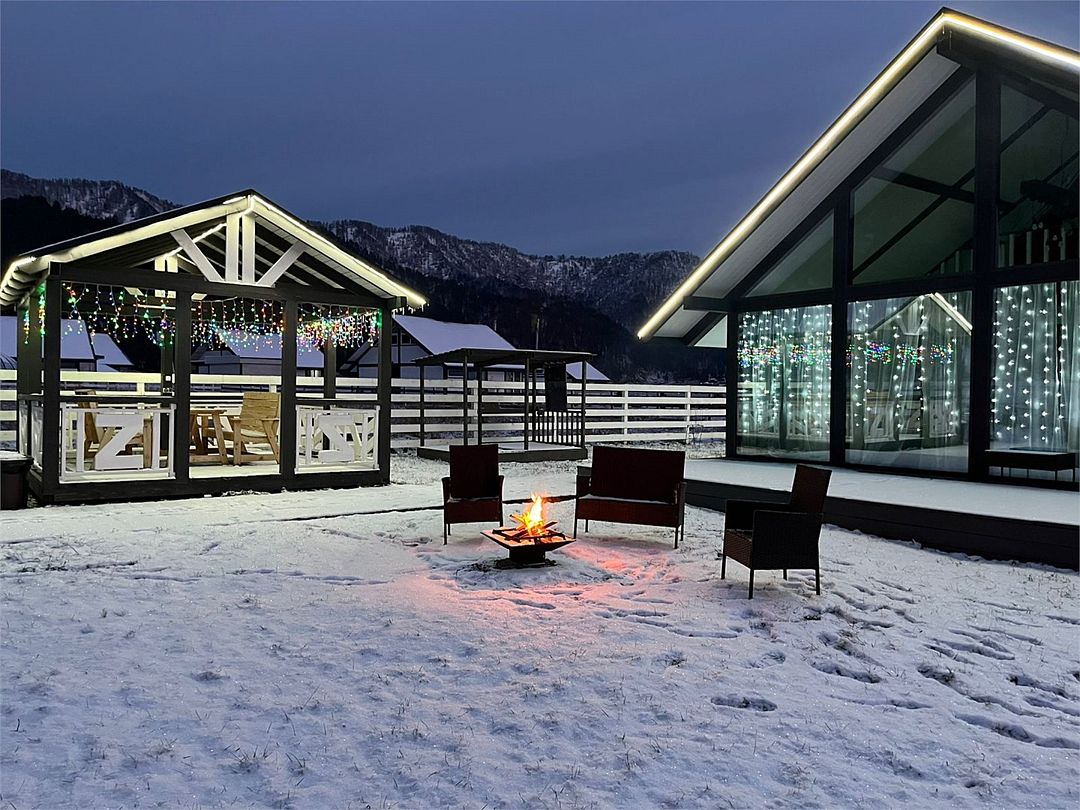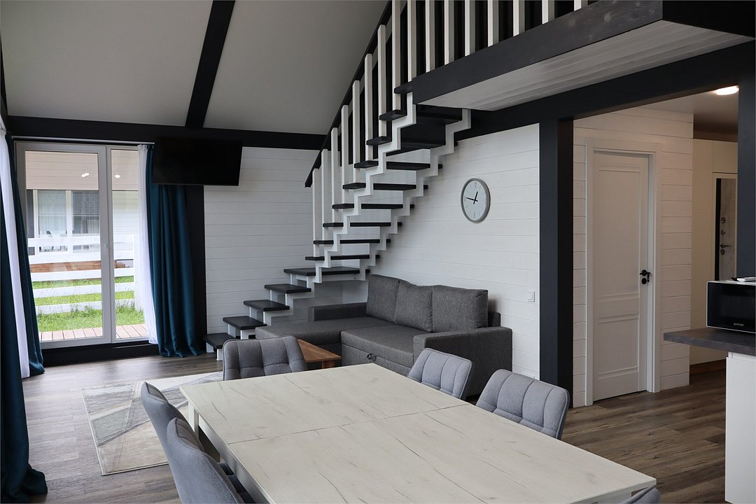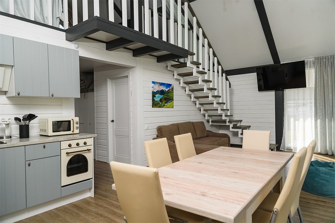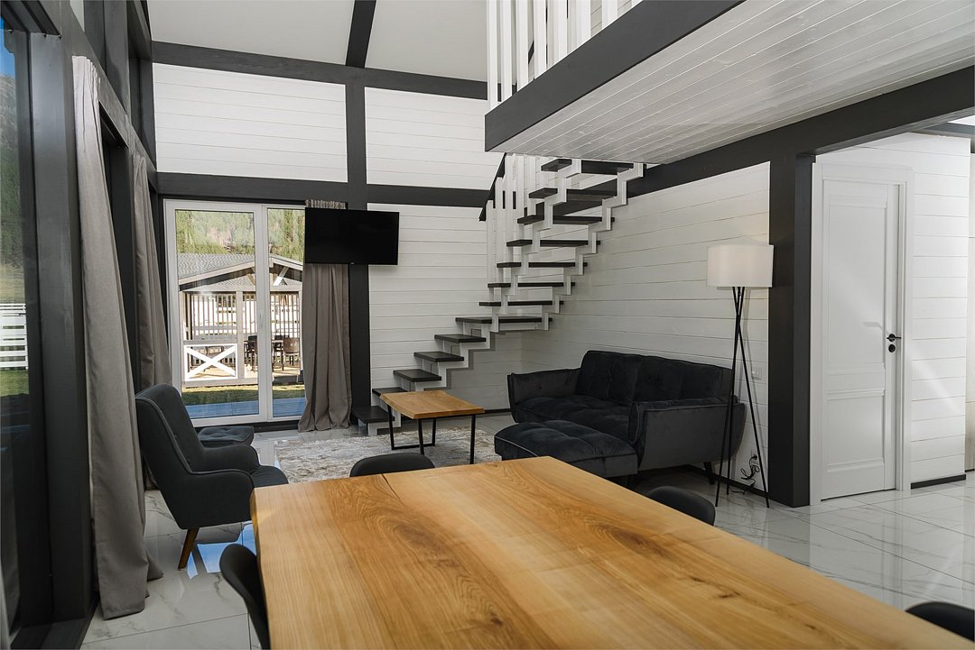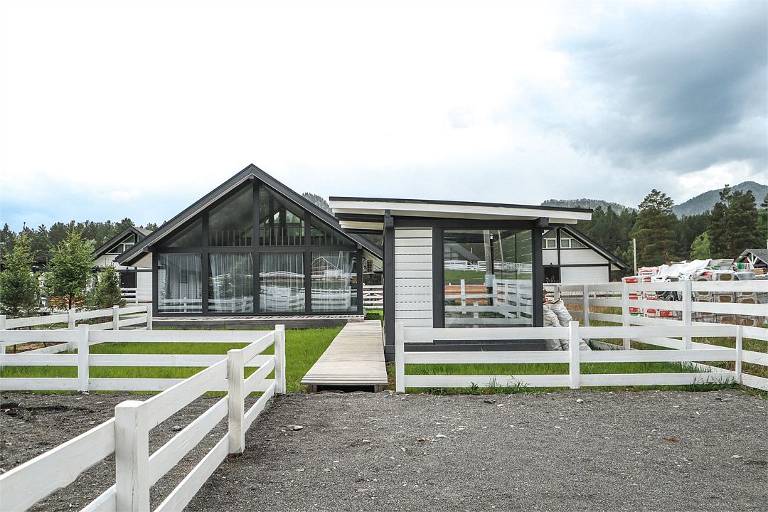 Комплекс включает в себя стильные двухэтажные коттеджи, у каждого есть собственный огороженный участок. В домах имеется все необходимое как для краткосрочного, так и для длительного проживания: объединенная с гостиной кухня, оборудованная техникой и посудой, уютные спальни, ванная комната с душевой кабиной, феном и туалетные принадлежностями. В каждом коттедже своя терраса, откуда открываются красивые виды. Для любителей мяса на углях на участке оборудована мангальная зона и беседка, на некоторых территориях имеются качели и установлены банный чан.