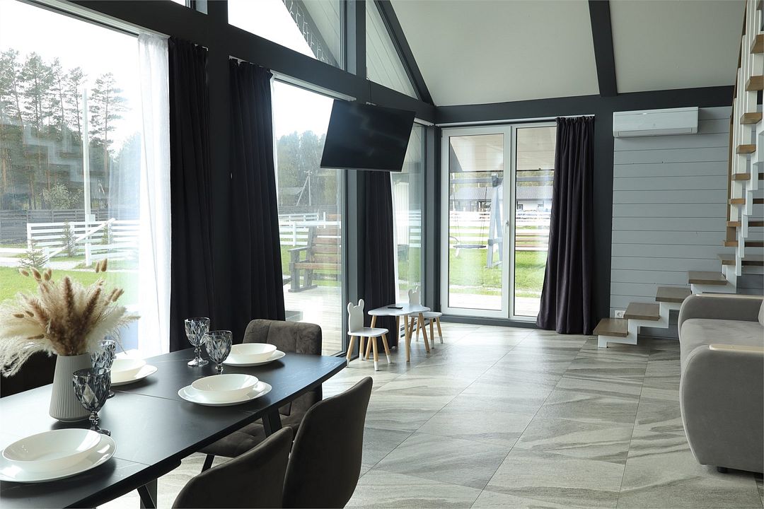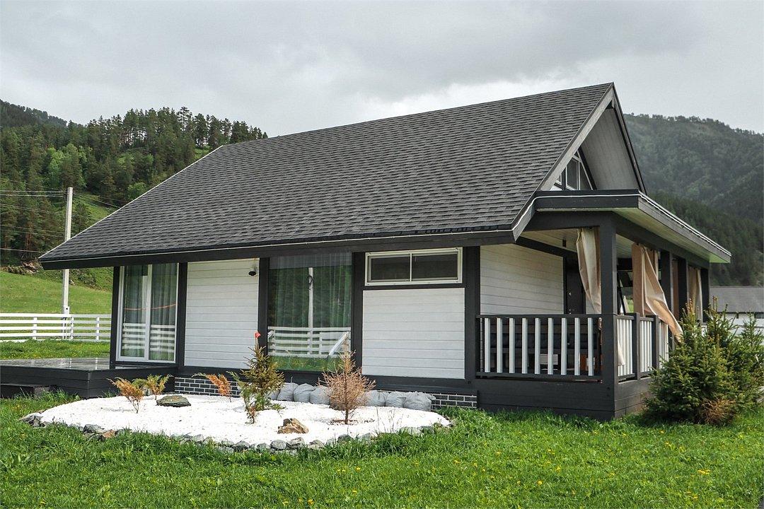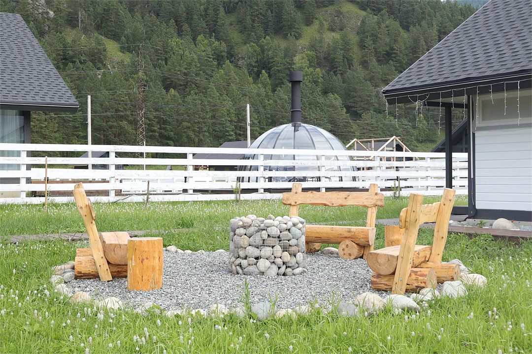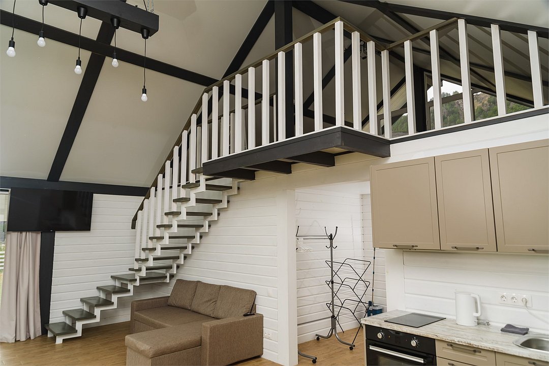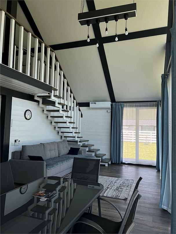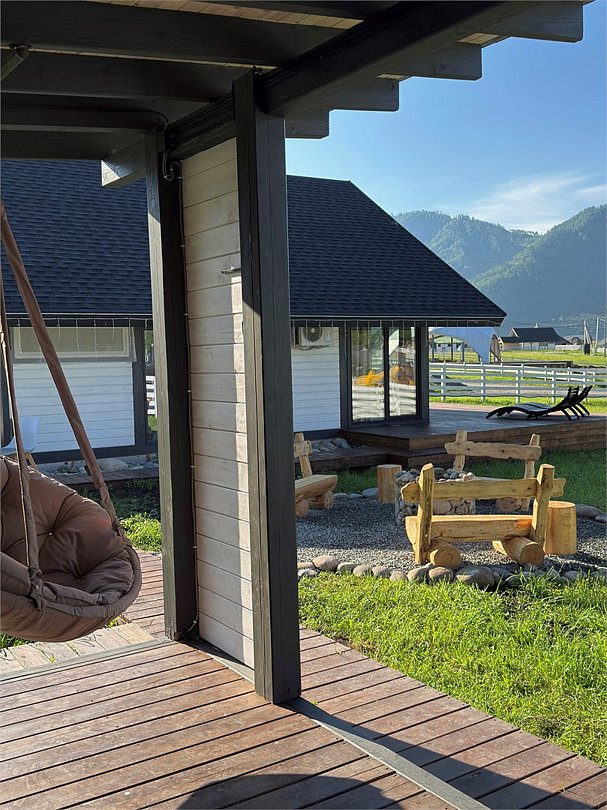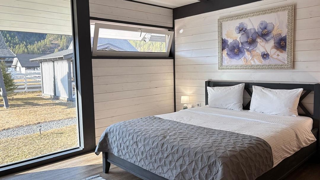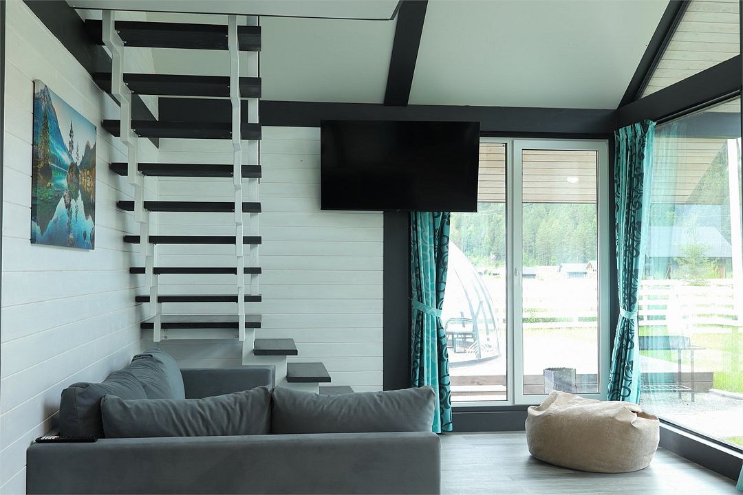 Комплекс включает в себя стильные двухэтажные коттеджи, у каждого есть собственный огороженный участок. В домах имеется все необходимое как для краткосрочного, так и для длительного проживания: объединенная с гостиной кухня, оборудованная техникой и посудой, уютные спальни, ванная комната с душевой кабиной, феном и туалетные принадлежностями. В каждом коттедже своя терраса, откуда открываются красивые виды. Для любителей мяса на углях на участке оборудована мангальная зона и беседка, на некоторых территориях имеются качели и установлены банный чан.