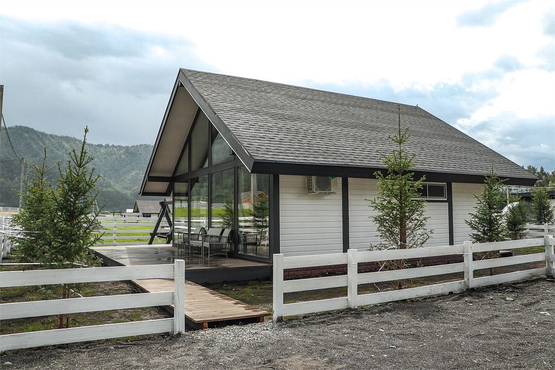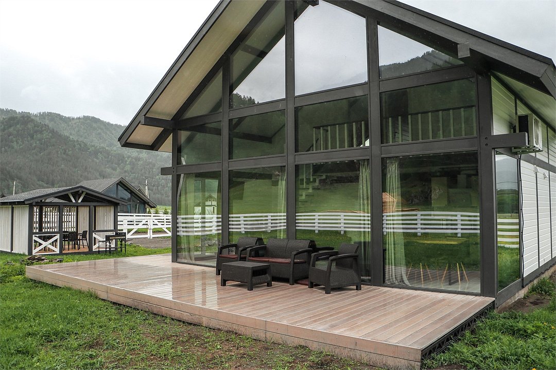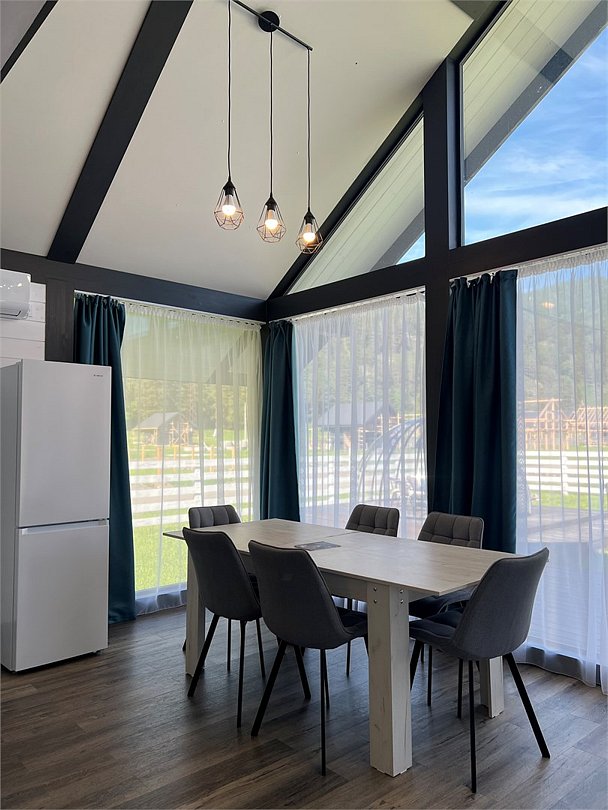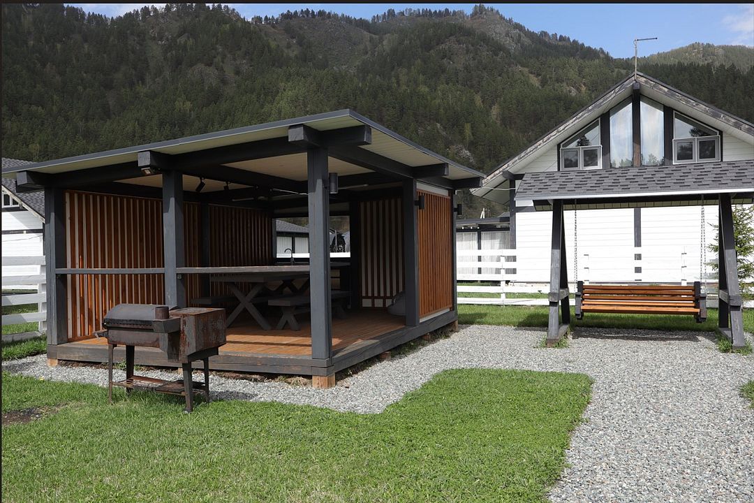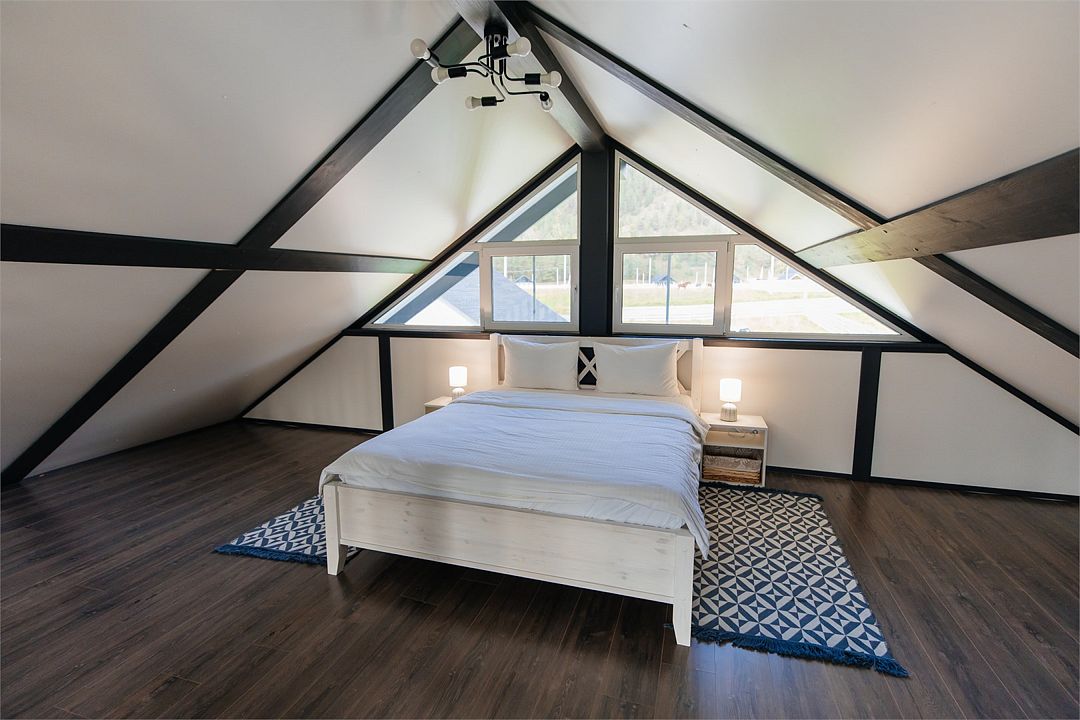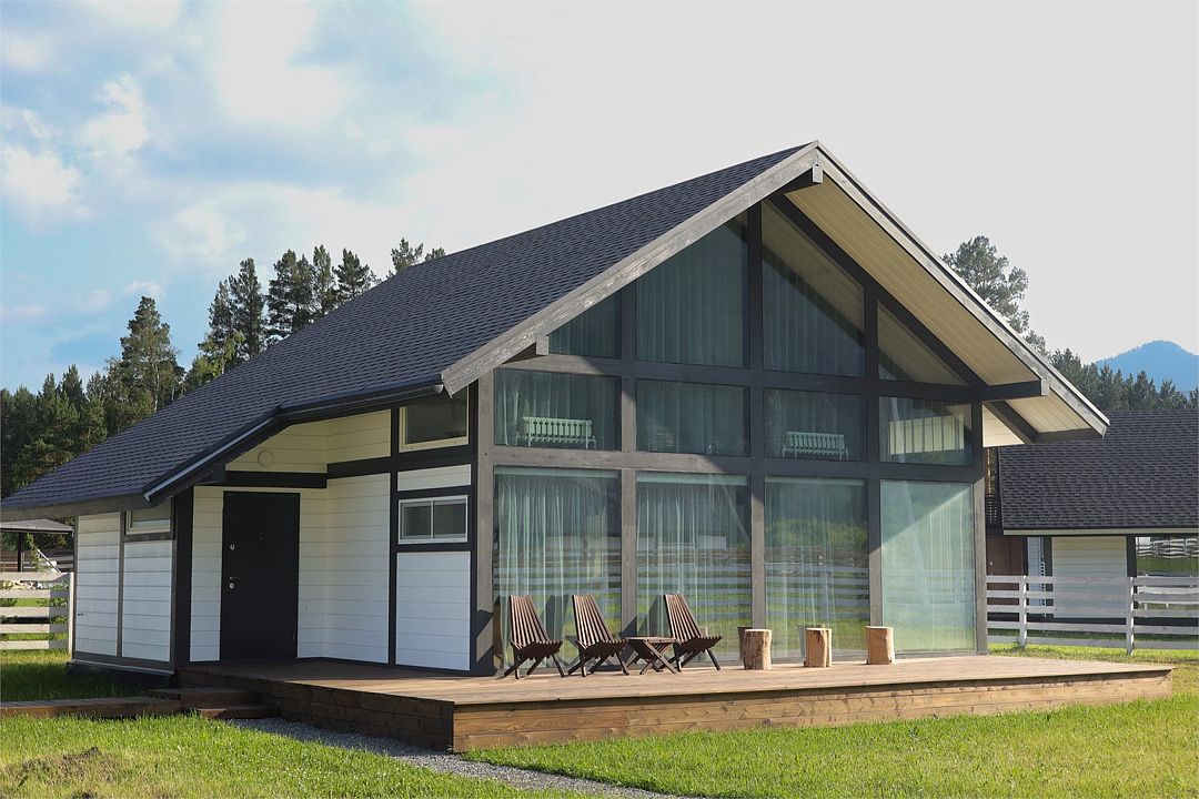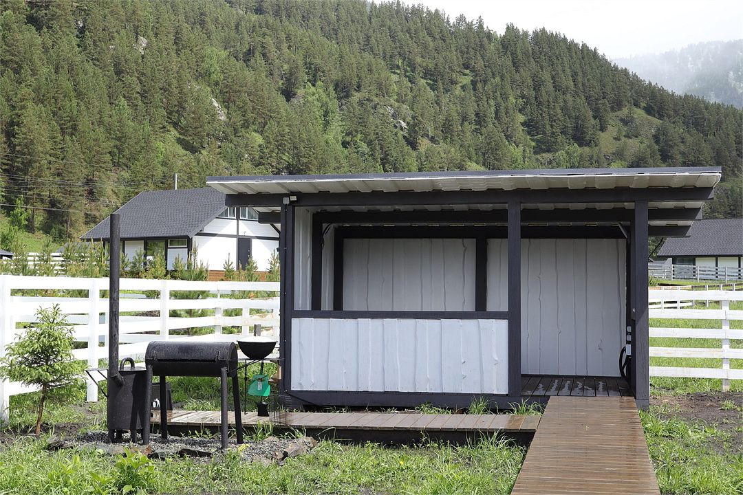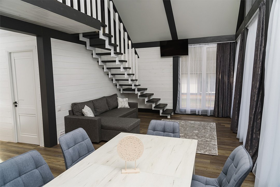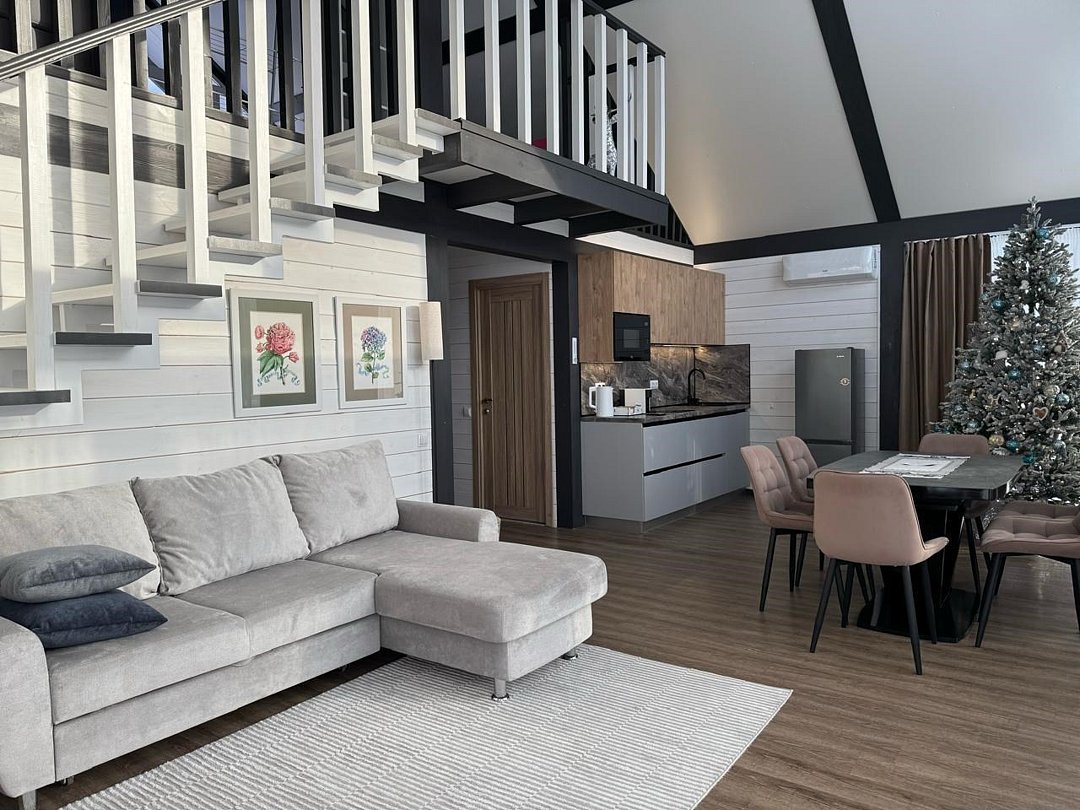 Комплекс включает в себя стильные двухэтажные коттеджи, у каждого есть собственный огороженный участок. В домах имеется все необходимое как для краткосрочного, так и для длительного проживания: объединенная с гостиной кухня, оборудованная техникой и посудой, уютные спальни, ванная комната с душевой кабиной, феном и туалетные принадлежностями. В каждом коттедже своя терраса, откуда открываются красивые виды. Для любителей мяса на углях на участке оборудована мангальная зона и беседка, на некоторых территориях имеются качели и установлены банный чан.