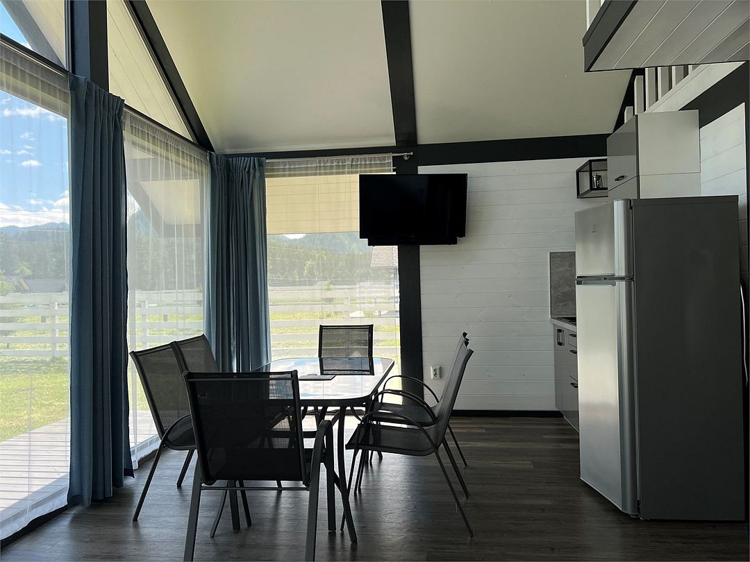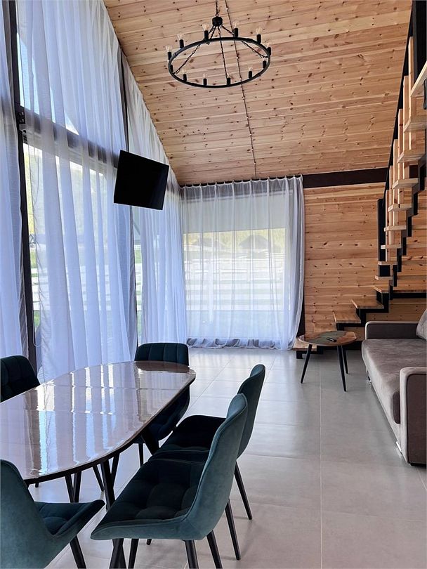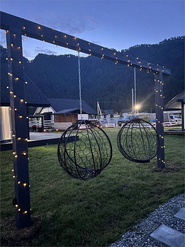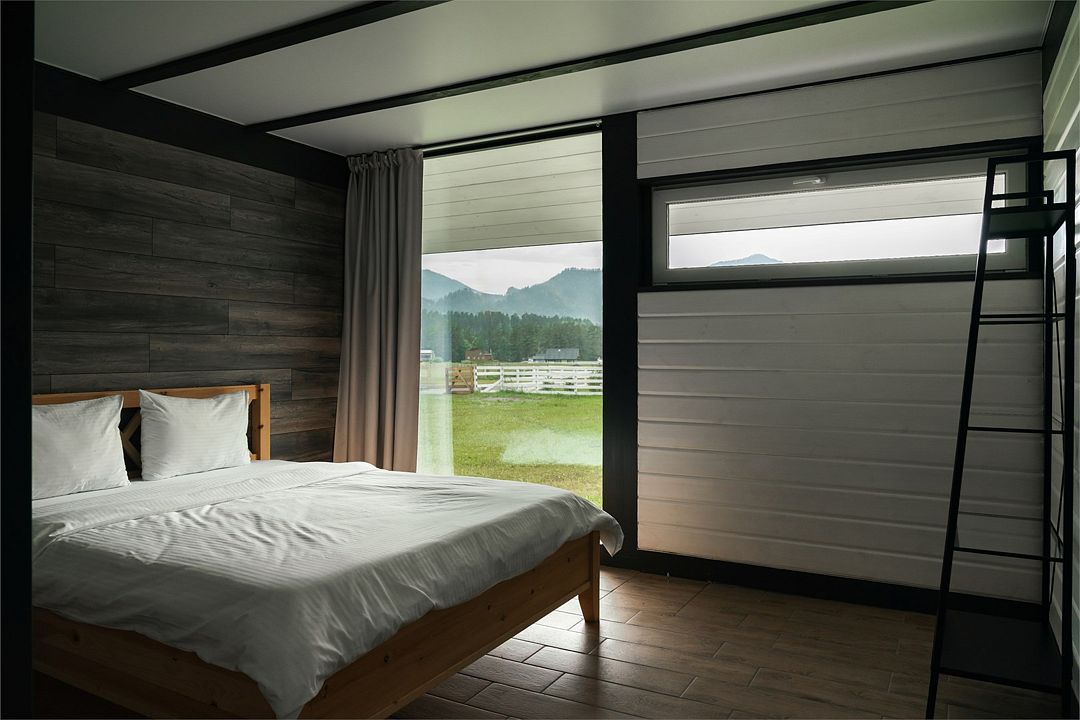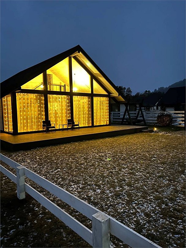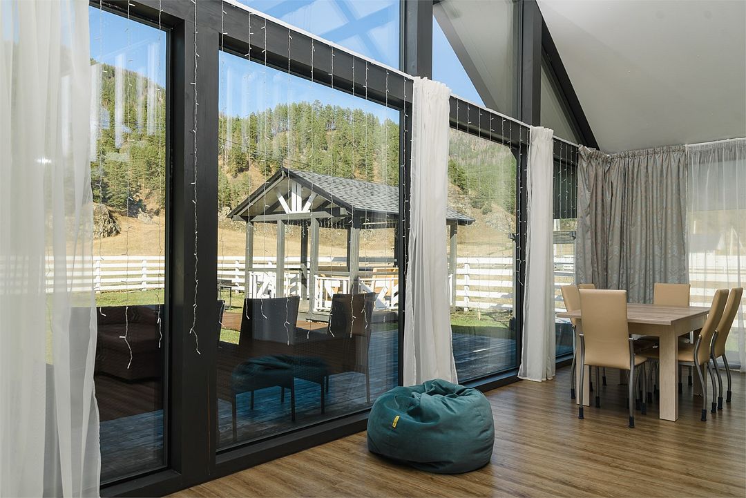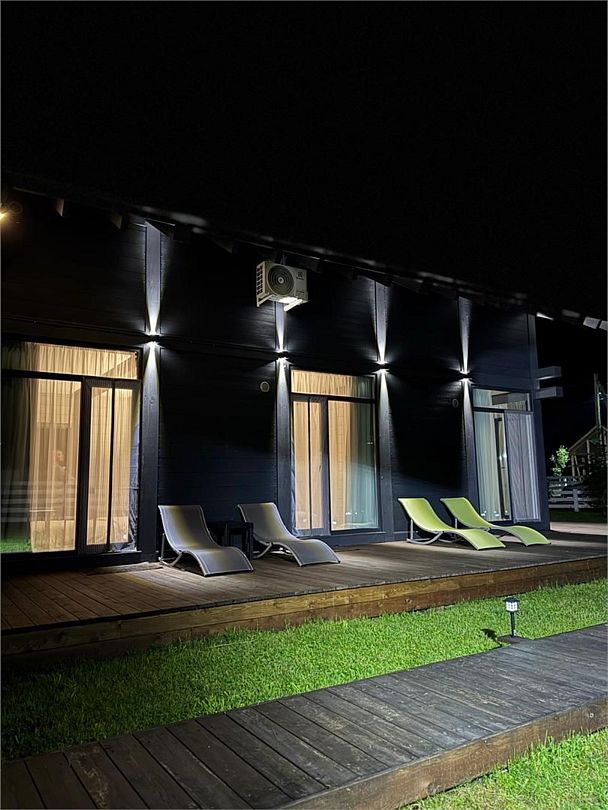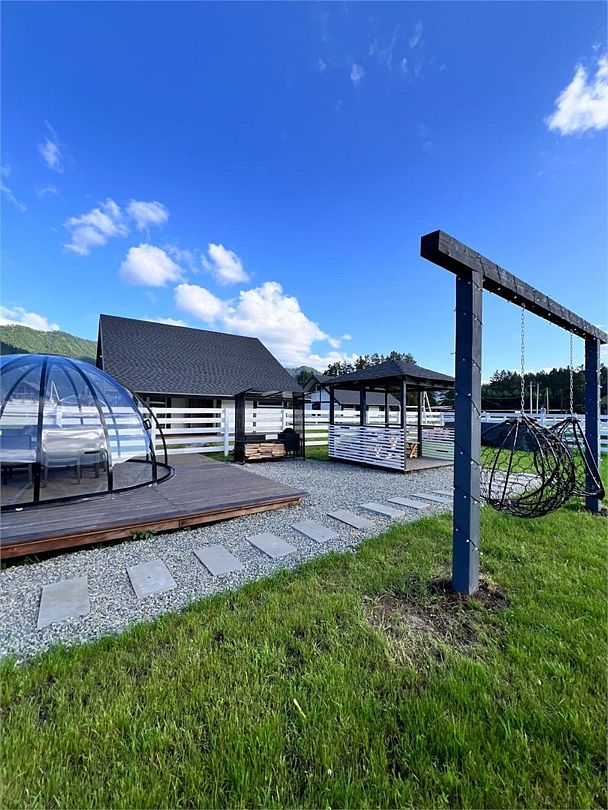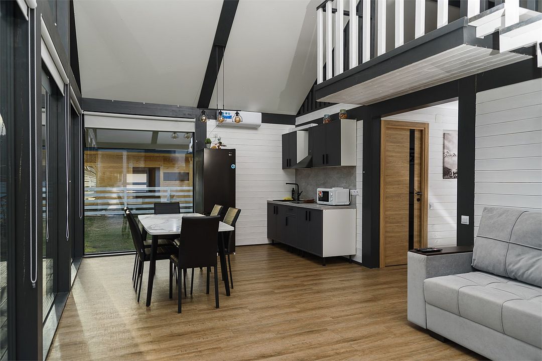 Комплекс включает в себя стильные двухэтажные коттеджи, у каждого есть собственный огороженный участок. В домах имеется все необходимое как для краткосрочного, так и для длительного проживания: объединенная с гостиной кухня, оборудованная техникой и посудой, уютные спальни, ванная комната с душевой кабиной, феном и туалетные принадлежностями. В каждом коттедже своя терраса, откуда открываются красивые виды. Для любителей мяса на углях на участке оборудована мангальная зона и беседка, на некоторых территориях имеются качели и установлены банный чан.