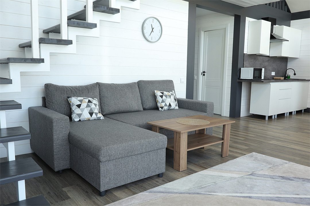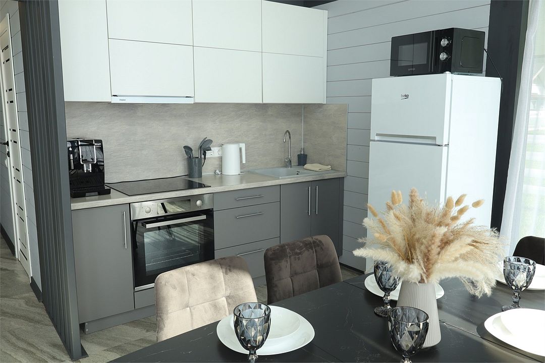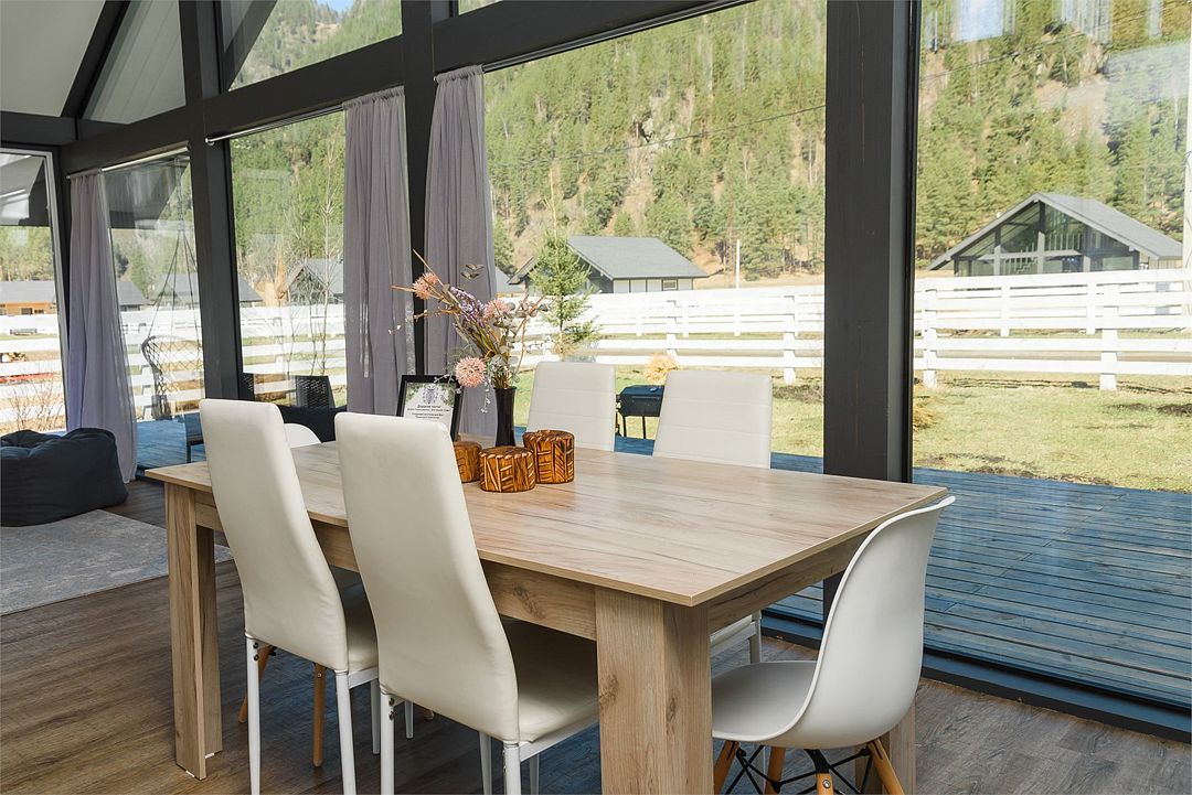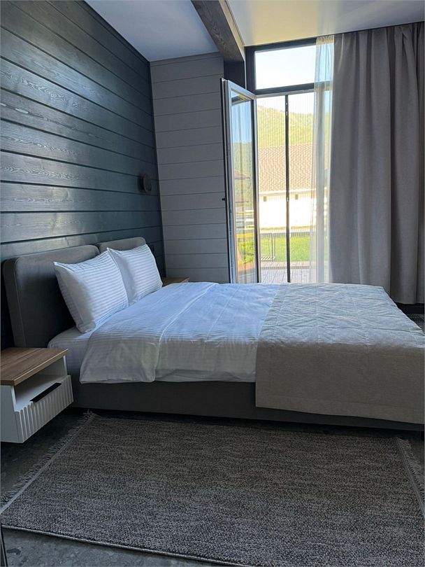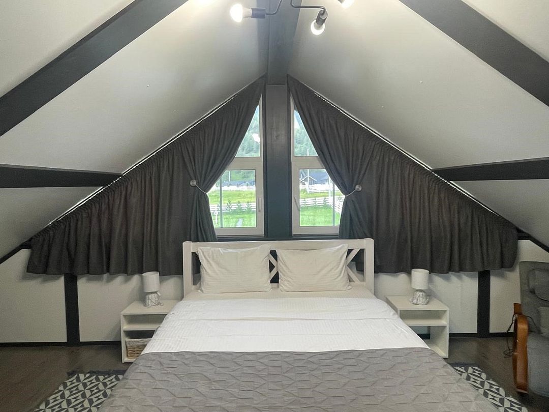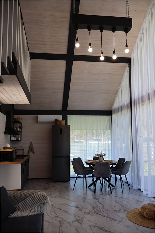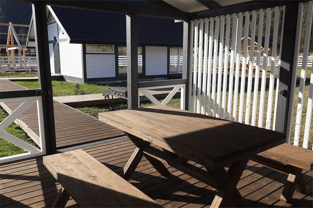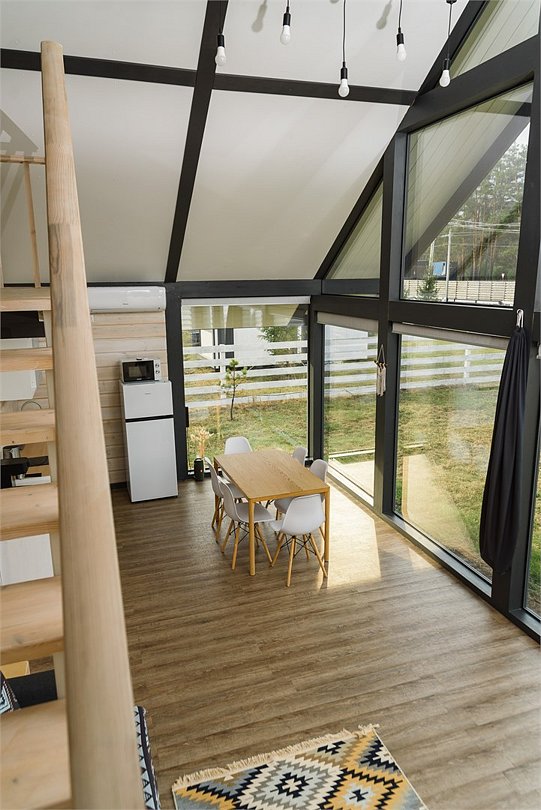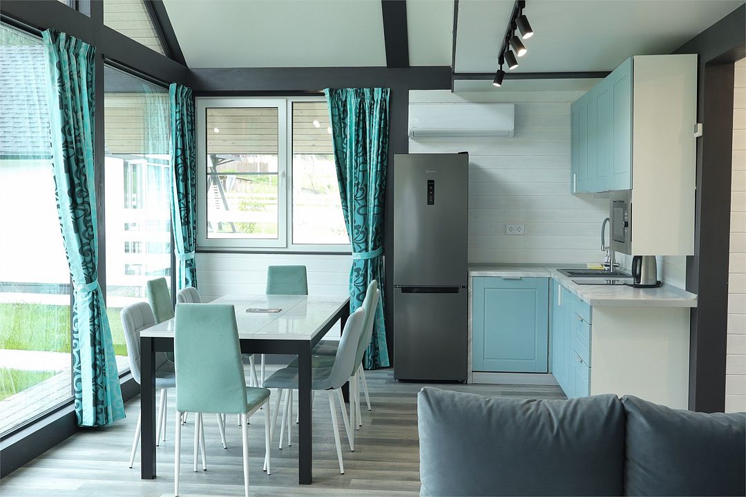 Комплекс включает в себя стильные двухэтажные коттеджи, у каждого есть собственный огороженный участок. В домах имеется все необходимое как для краткосрочного, так и для длительного проживания: объединенная с гостиной кухня, оборудованная техникой и посудой, уютные спальни, ванная комната с душевой кабиной, феном и туалетные принадлежностями. В каждом коттедже своя терраса, откуда открываются красивые виды. Для любителей мяса на углях на участке оборудована мангальная зона и беседка, на некоторых территориях имеются качели и установлены банный чан.