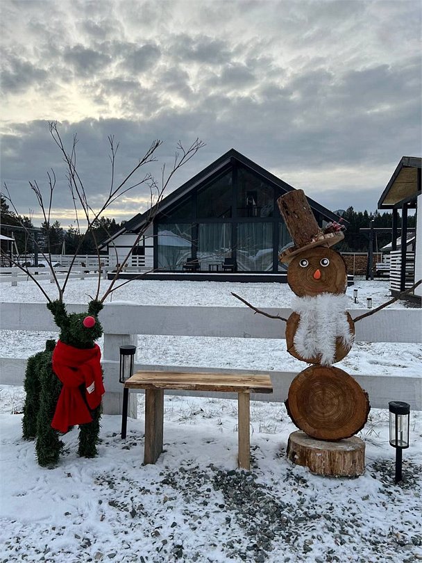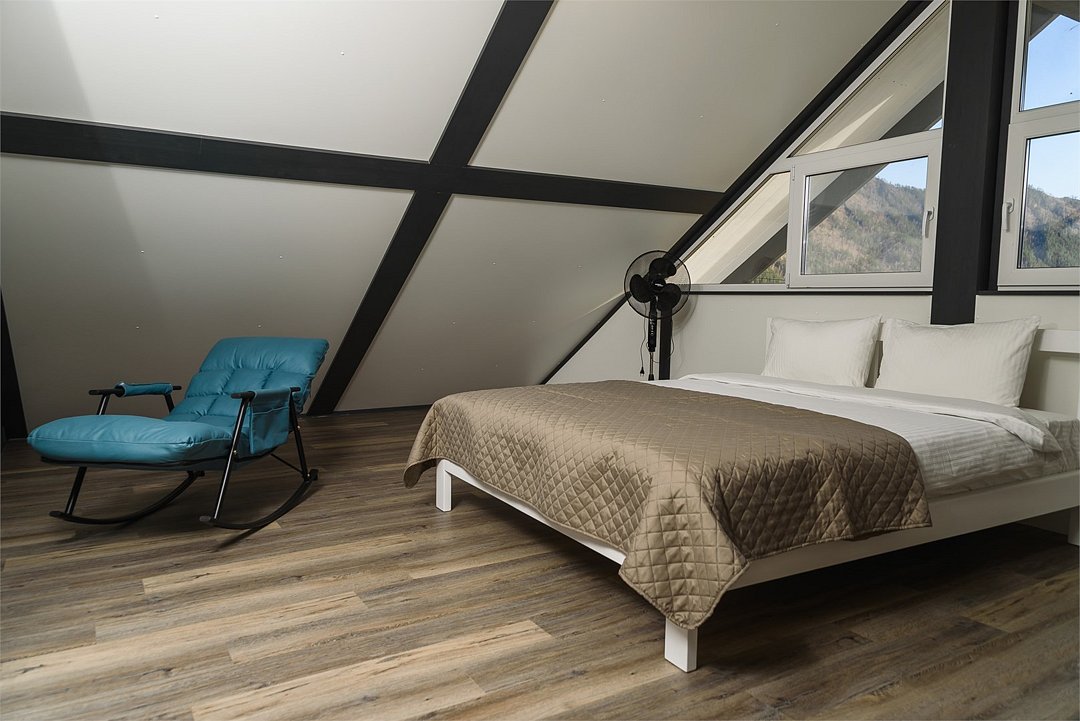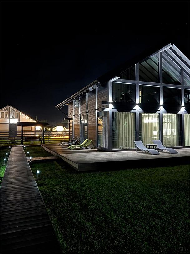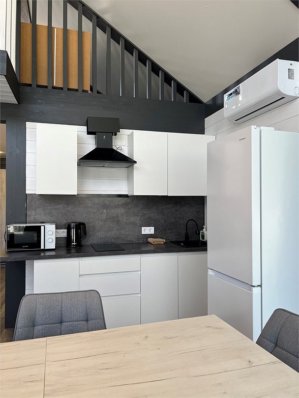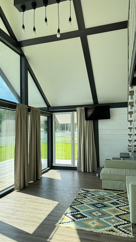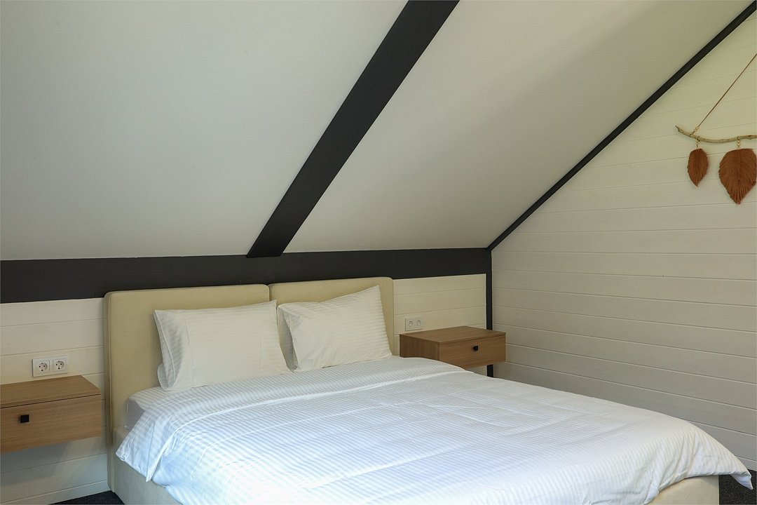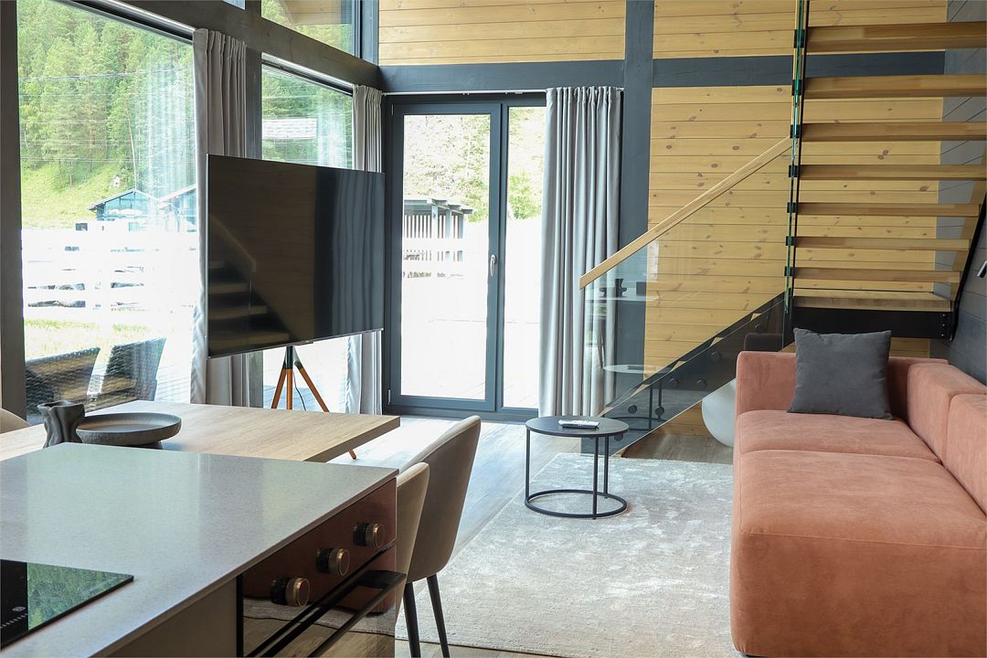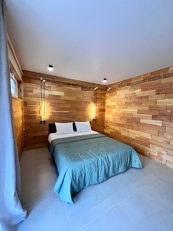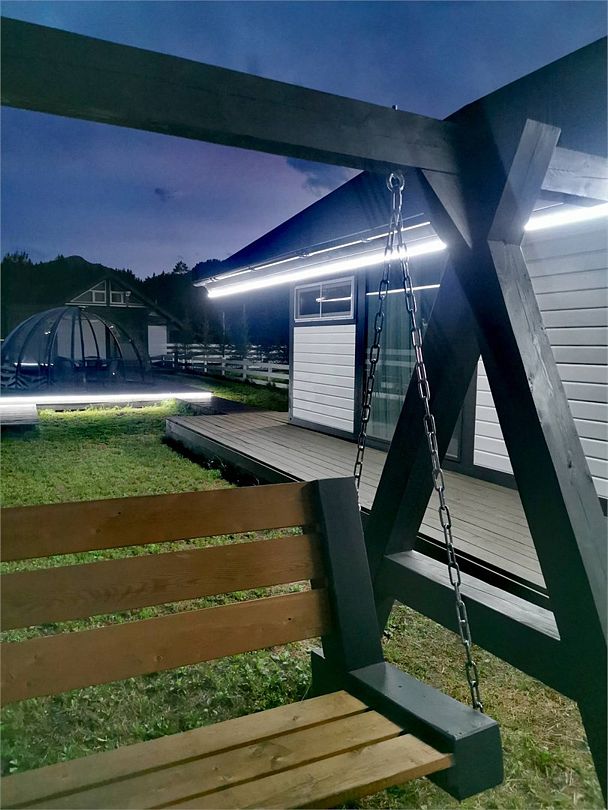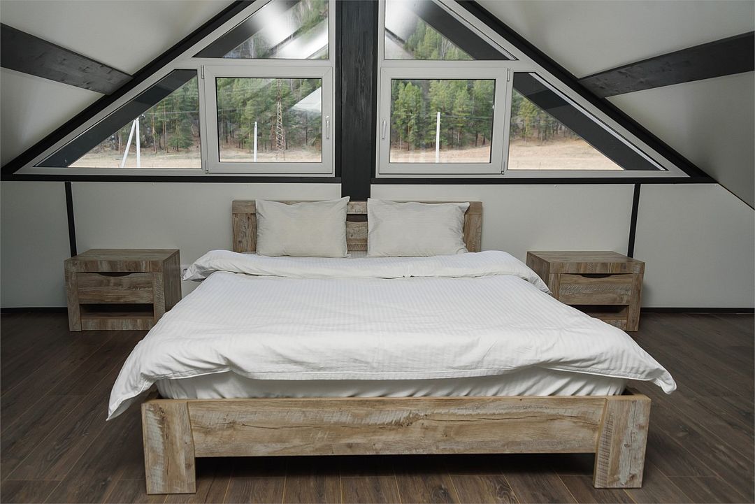 Комплекс включает в себя стильные двухэтажные коттеджи, у каждого есть собственный огороженный участок. В домах имеется все необходимое как для краткосрочного, так и для длительного проживания: объединенная с гостиной кухня, оборудованная техникой и посудой, уютные спальни, ванная комната с душевой кабиной, феном и туалетные принадлежностями. В каждом коттедже своя терраса, откуда открываются красивые виды. Для любителей мяса на углях на участке оборудована мангальная зона и беседка, на некоторых территориях имеются качели и установлены банный чан.