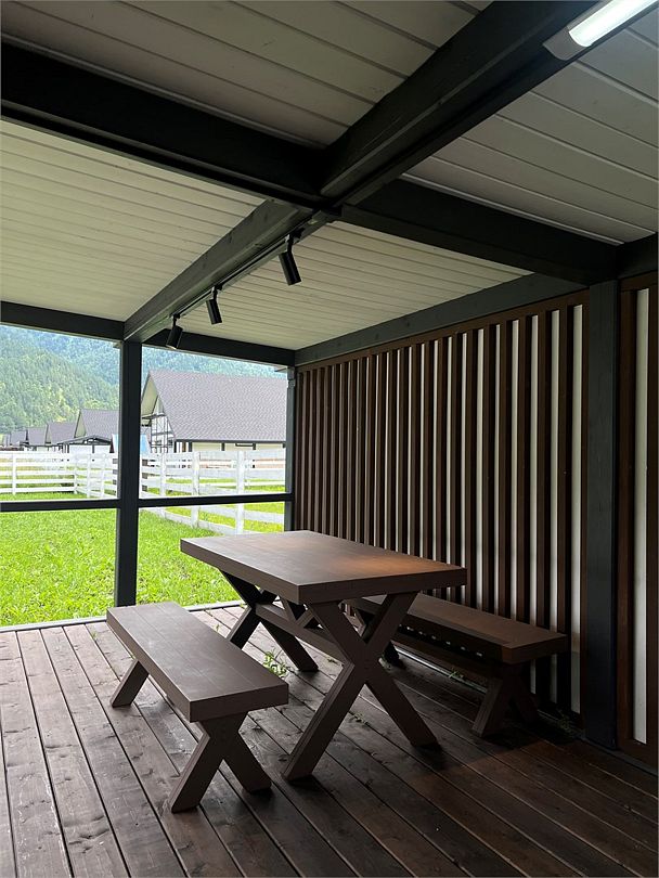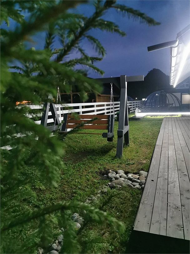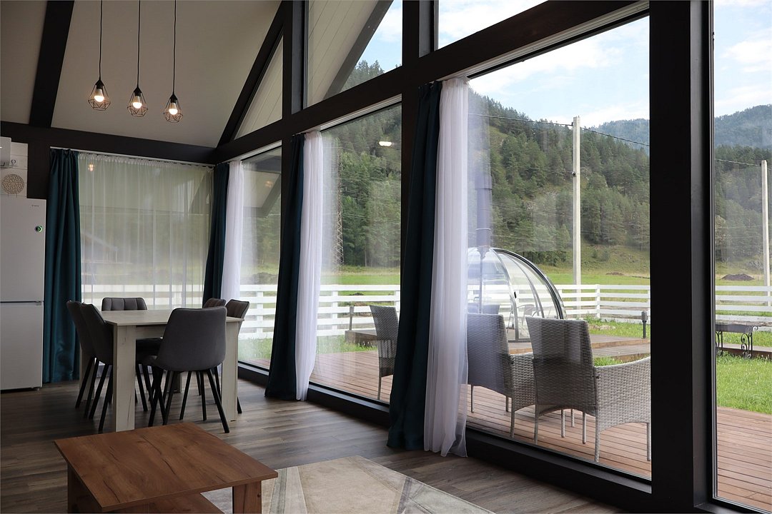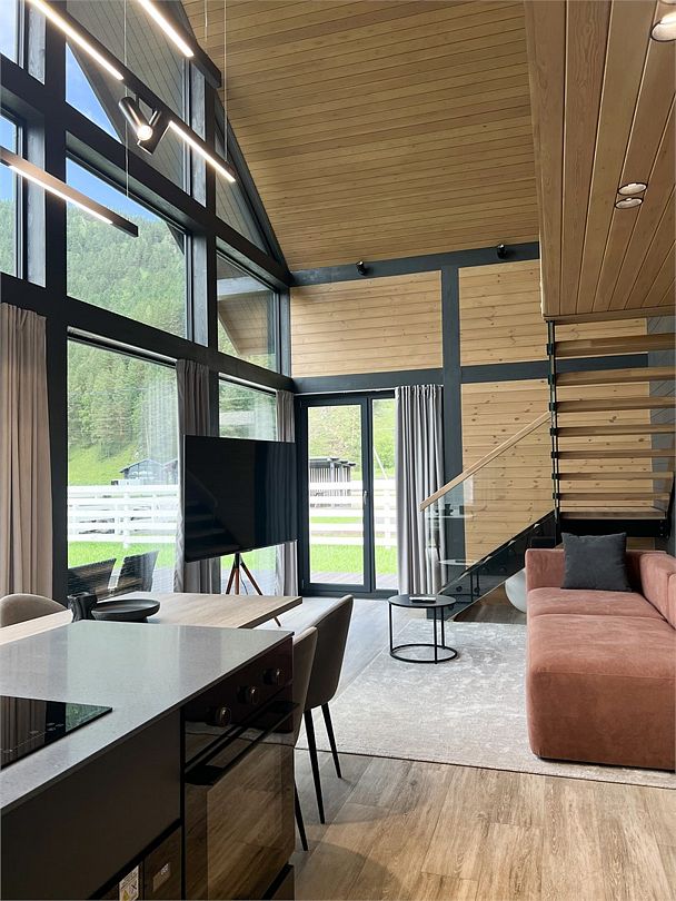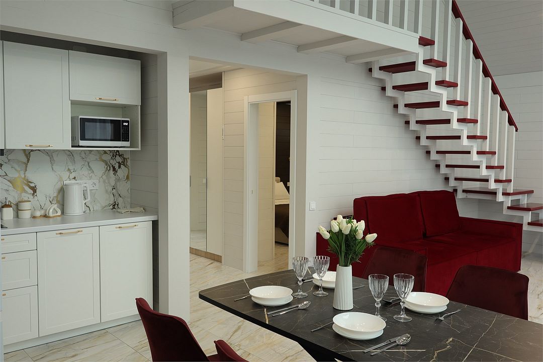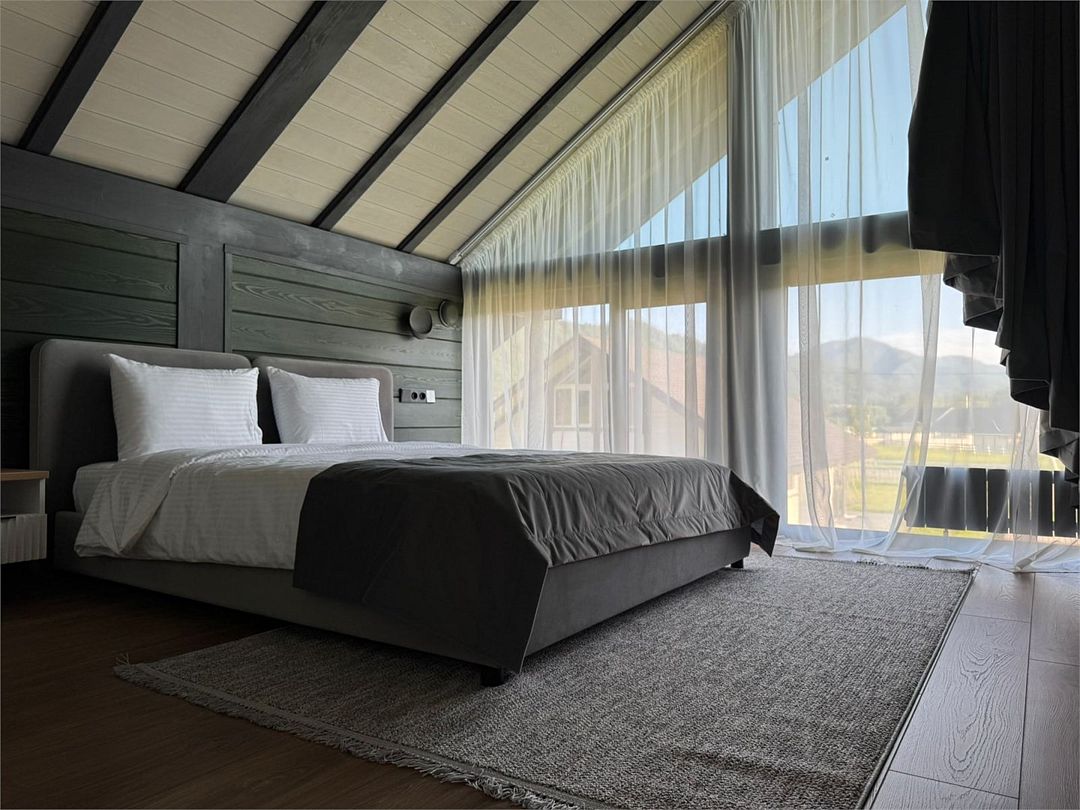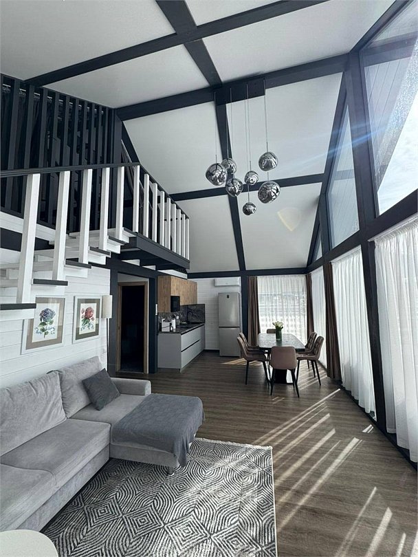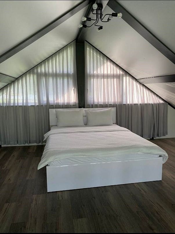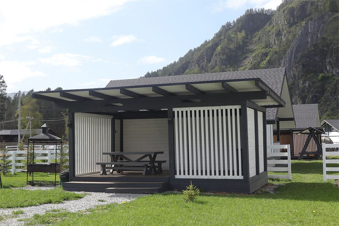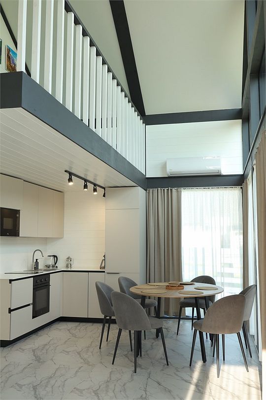 Комплекс включает в себя стильные двухэтажные коттеджи, у каждого есть собственный огороженный участок. В домах имеется все необходимое как для краткосрочного, так и для длительного проживания: объединенная с гостиной кухня, оборудованная техникой и посудой, уютные спальни, ванная комната с душевой кабиной, феном и туалетные принадлежностями. В каждом коттедже своя терраса, откуда открываются красивые виды. Для любителей мяса на углях на участке оборудована мангальная зона и беседка, на некоторых территориях имеются качели и установлены банный чан.
