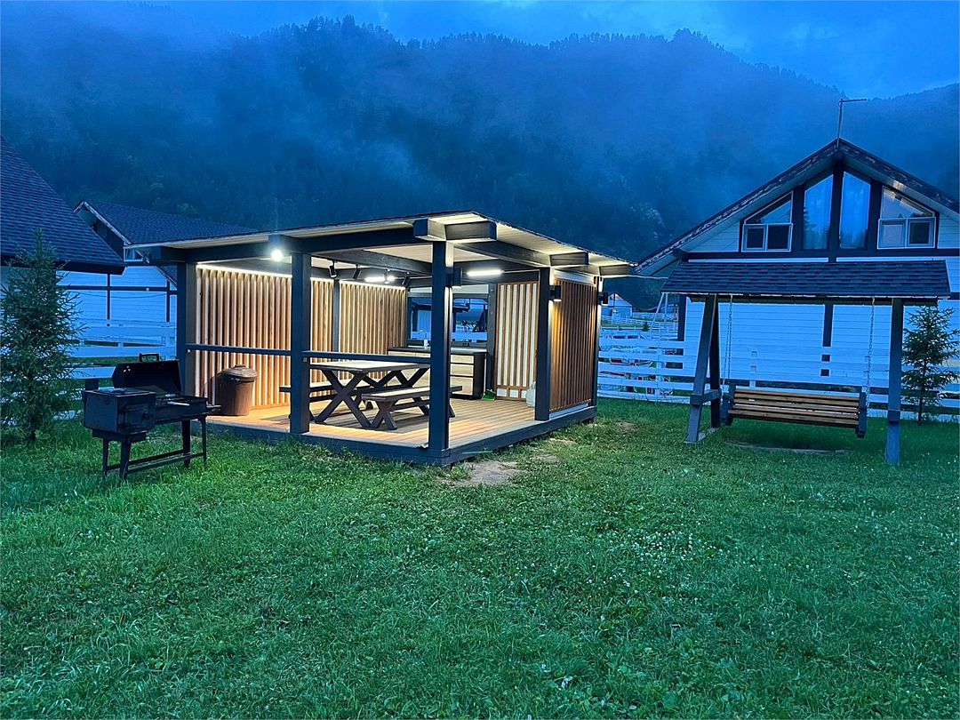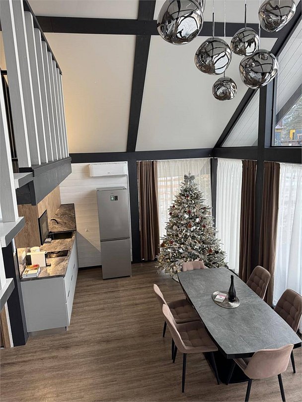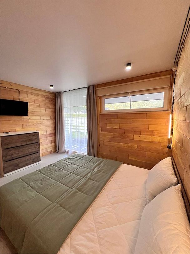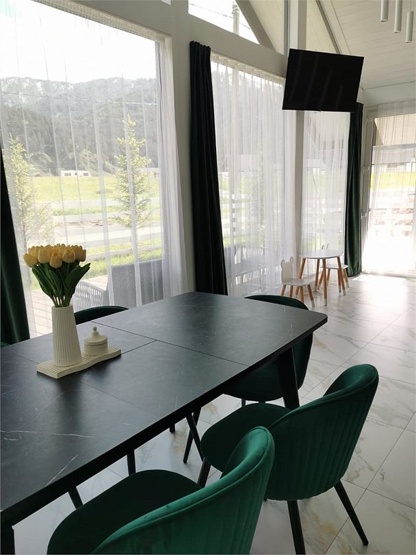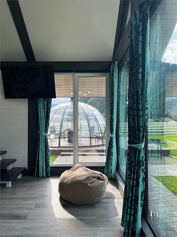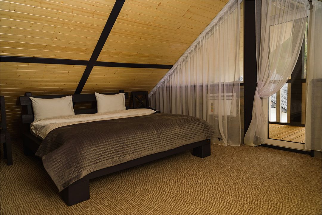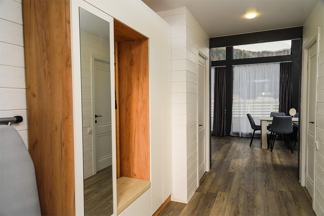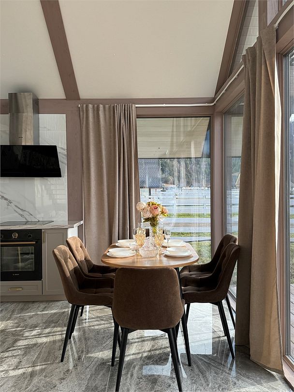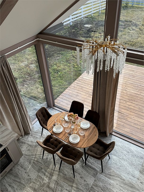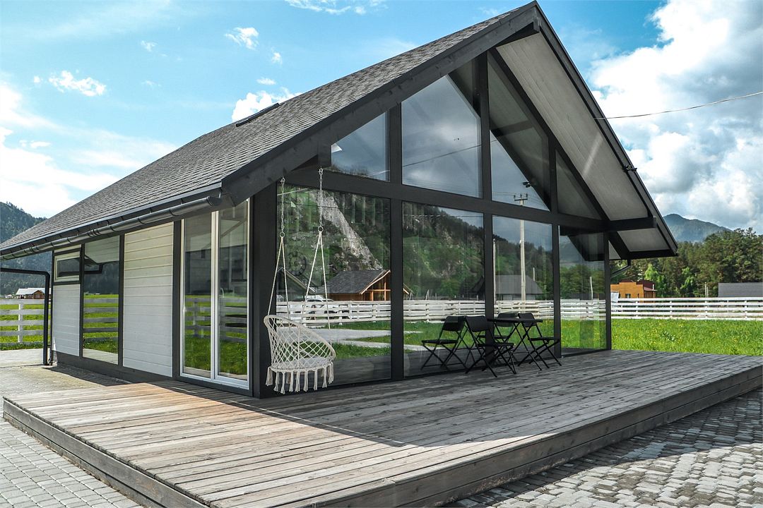 Комплекс включает в себя стильные двухэтажные коттеджи, у каждого есть собственный огороженный участок. В домах имеется все необходимое как для краткосрочного, так и для длительного проживания: объединенная с гостиной кухня, оборудованная техникой и посудой, уютные спальни, ванная комната с душевой кабиной, феном и туалетные принадлежностями. В каждом коттедже своя терраса, откуда открываются красивые виды. Для любителей мяса на углях на участке оборудована мангальная зона и беседка, на некоторых территориях имеются качели и установлены банный чан.