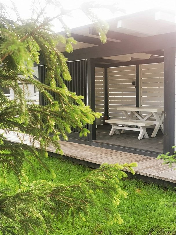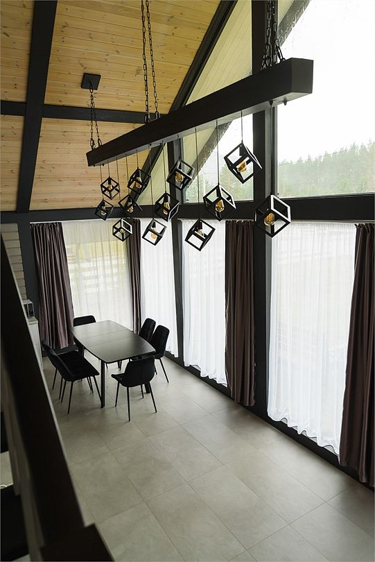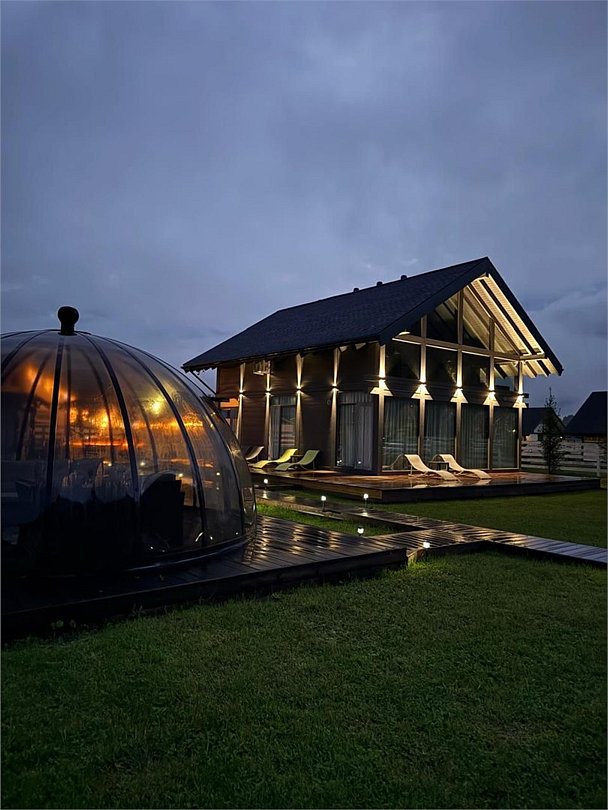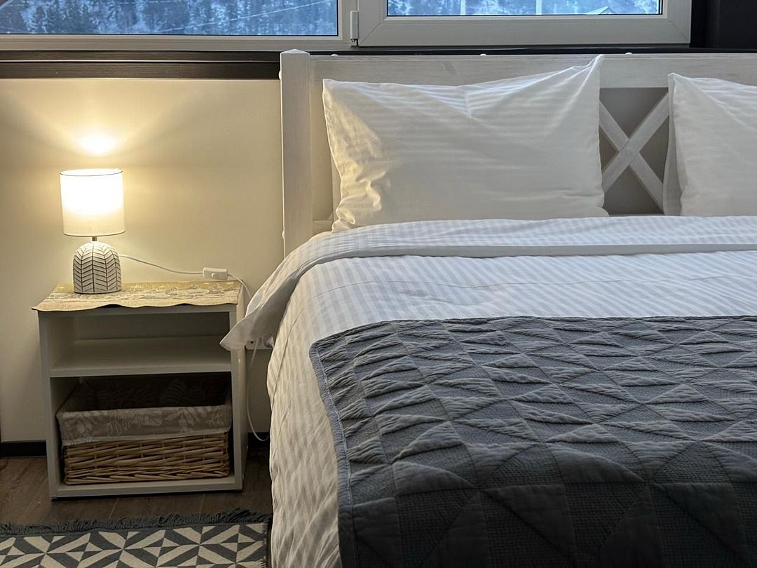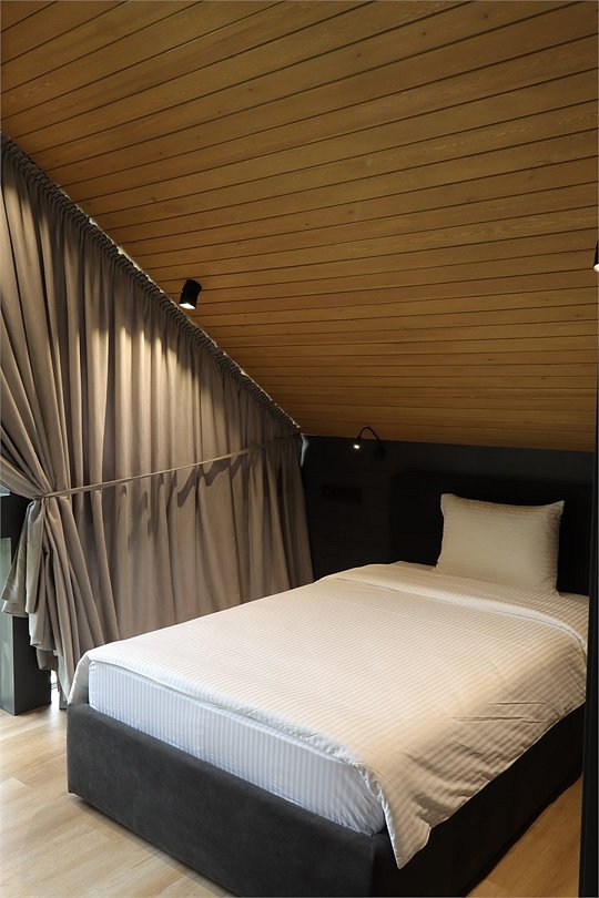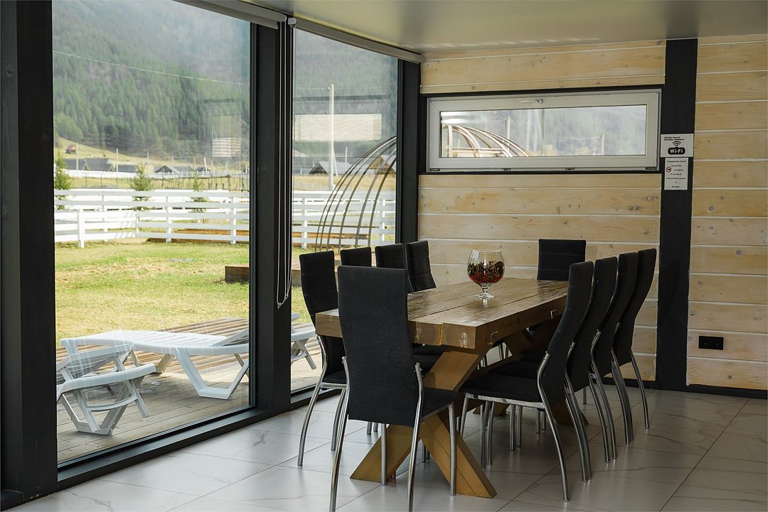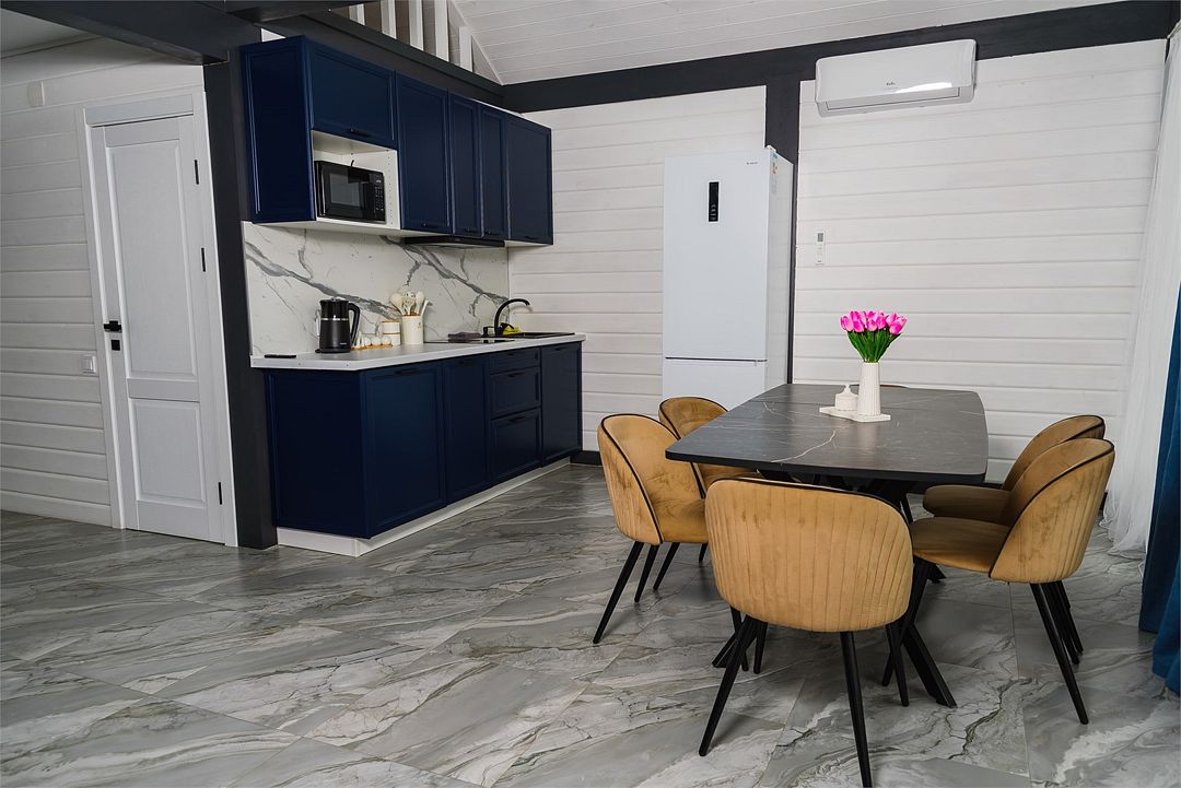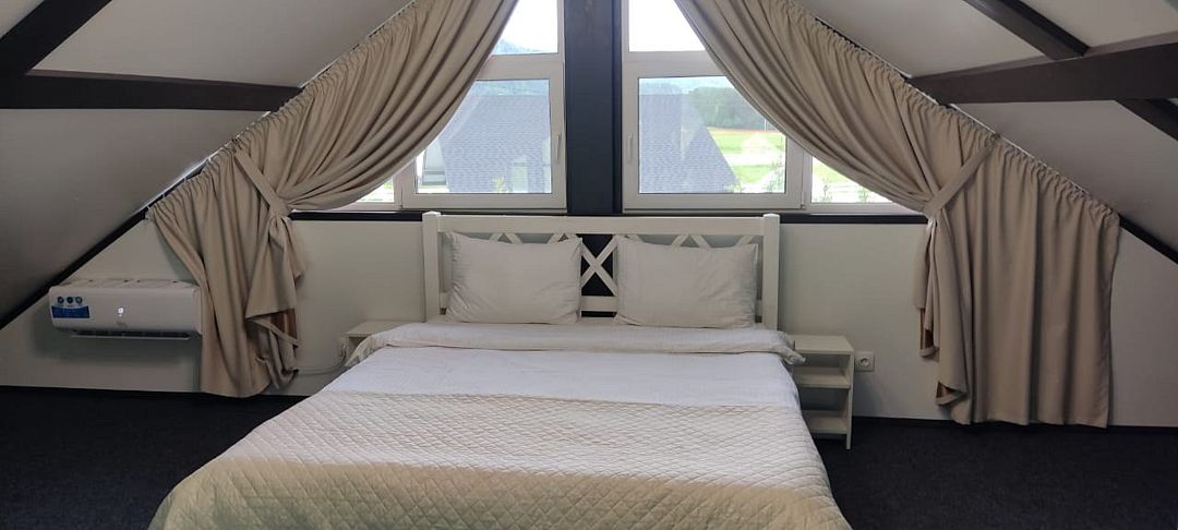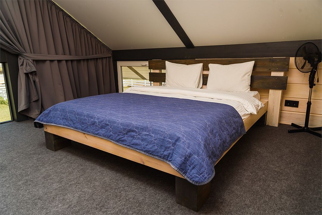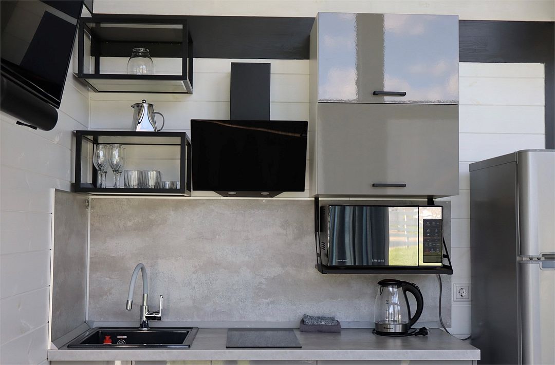 Комплекс включает в себя стильные двухэтажные коттеджи, у каждого есть собственный огороженный участок. В домах имеется все необходимое как для краткосрочного, так и для длительного проживания: объединенная с гостиной кухня, оборудованная техникой и посудой, уютные спальни, ванная комната с душевой кабиной, феном и туалетные принадлежностями. В каждом коттедже своя терраса, откуда открываются красивые виды. Для любителей мяса на углях на участке оборудована мангальная зона и беседка, на некоторых территориях имеются качели и установлены банный чан.
