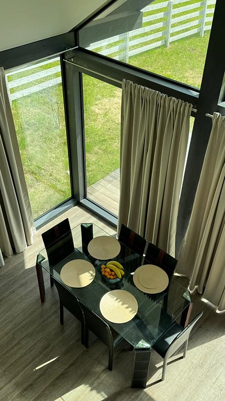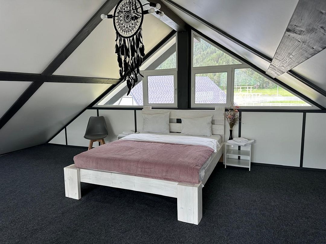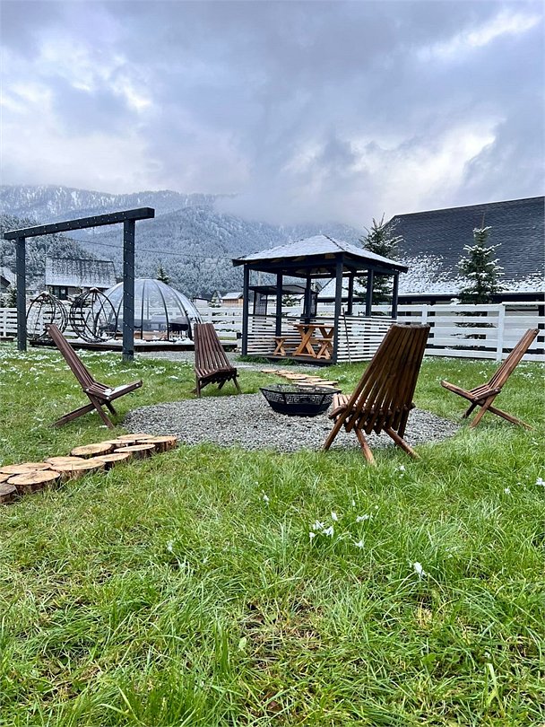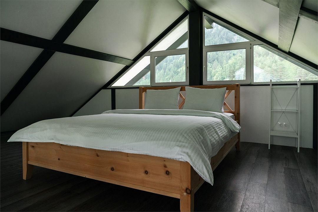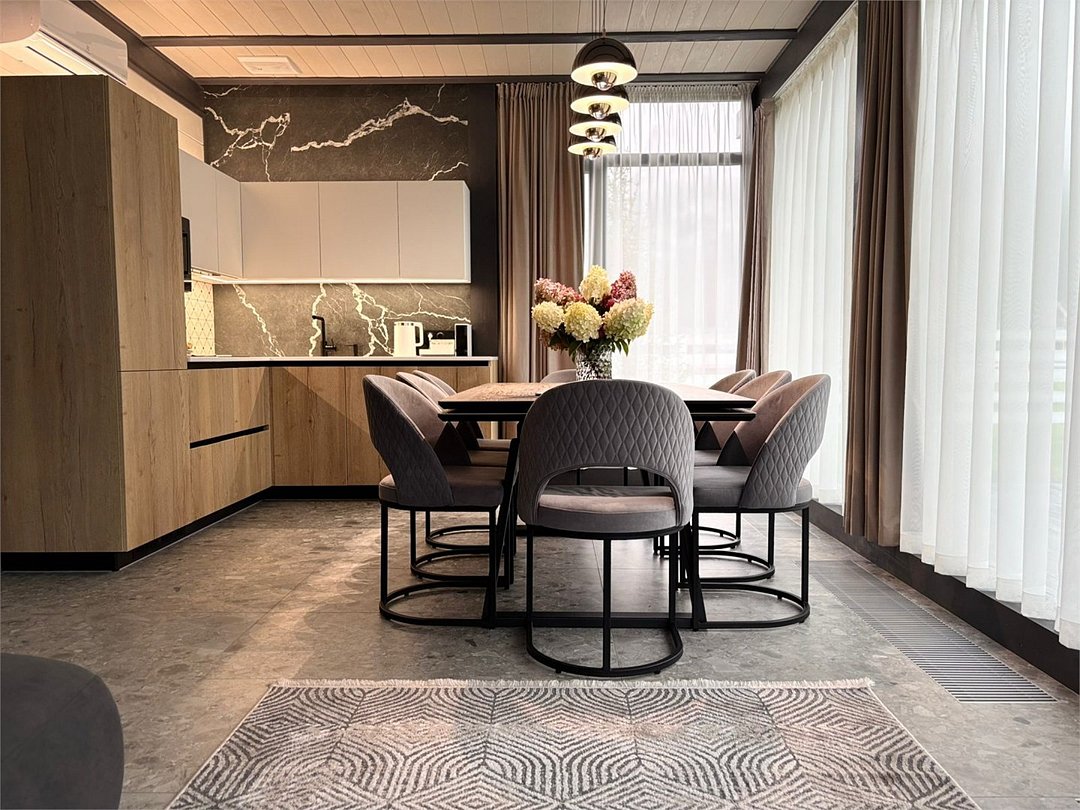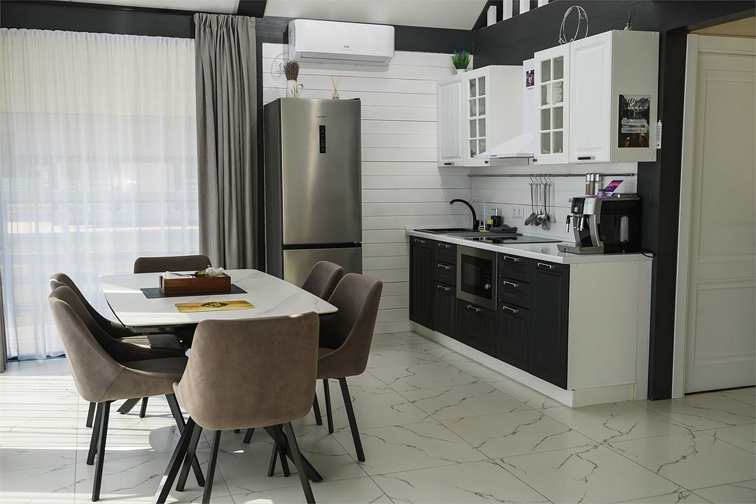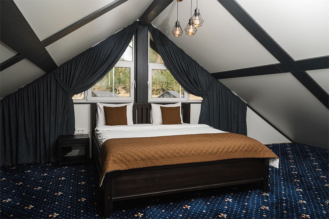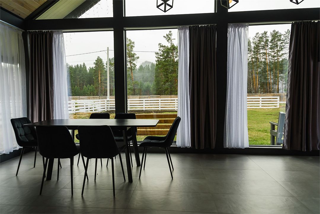 Комплекс включает в себя стильные двухэтажные коттеджи, у каждого есть собственный огороженный участок. В домах имеется все необходимое как для краткосрочного, так и для длительного проживания: объединенная с гостиной кухня, оборудованная техникой и посудой, уютные спальни, ванная комната с душевой кабиной, феном и туалетные принадлежностями. В каждом коттедже своя терраса, откуда открываются красивые виды. Для любителей мяса на углях на участке оборудована мангальная зона и беседка, на некоторых территориях имеются качели и установлены банный чан.