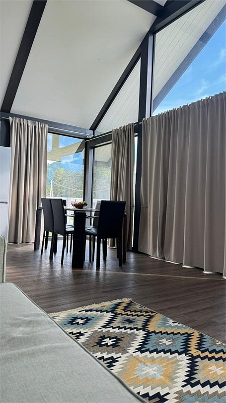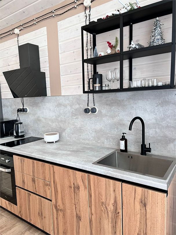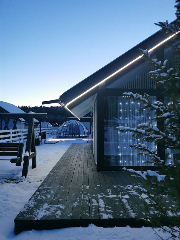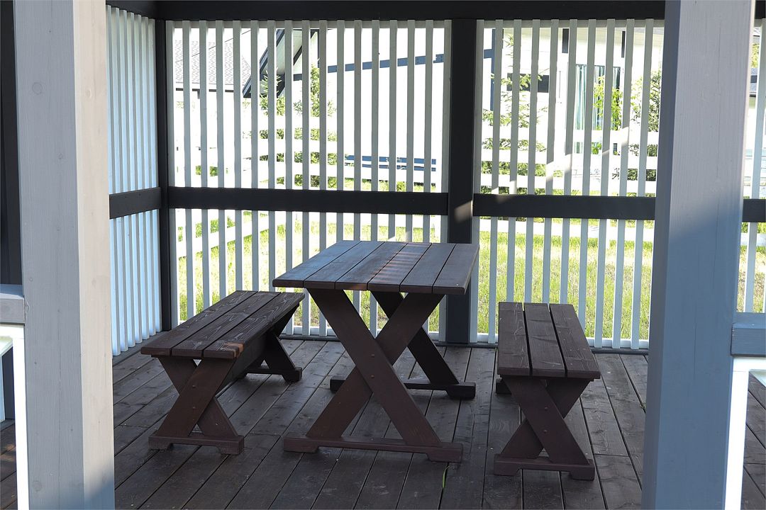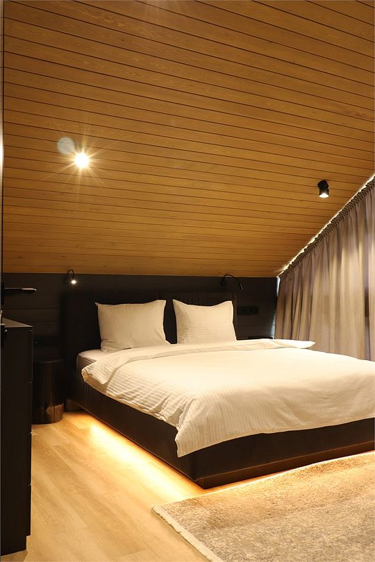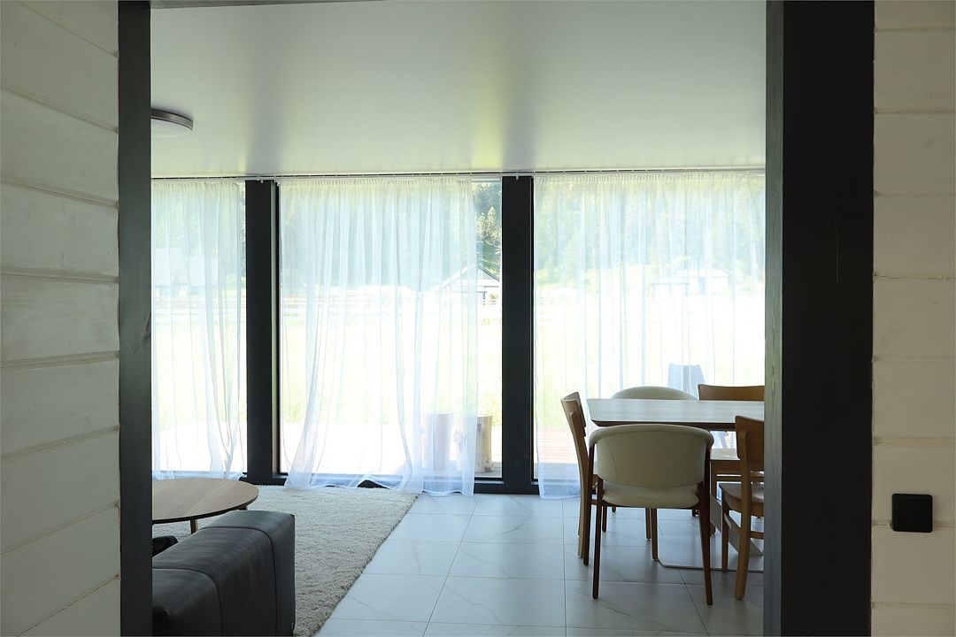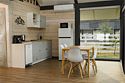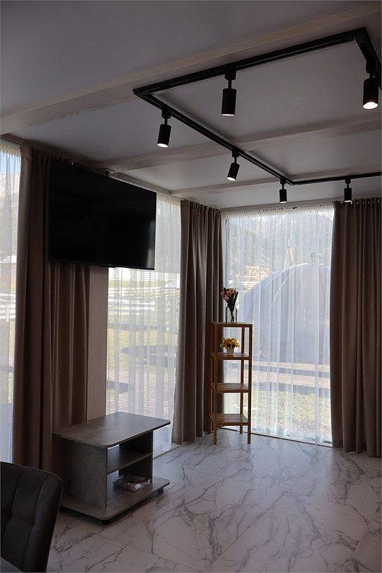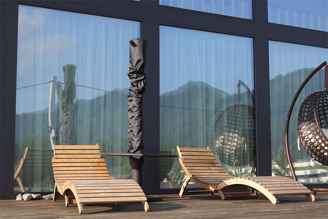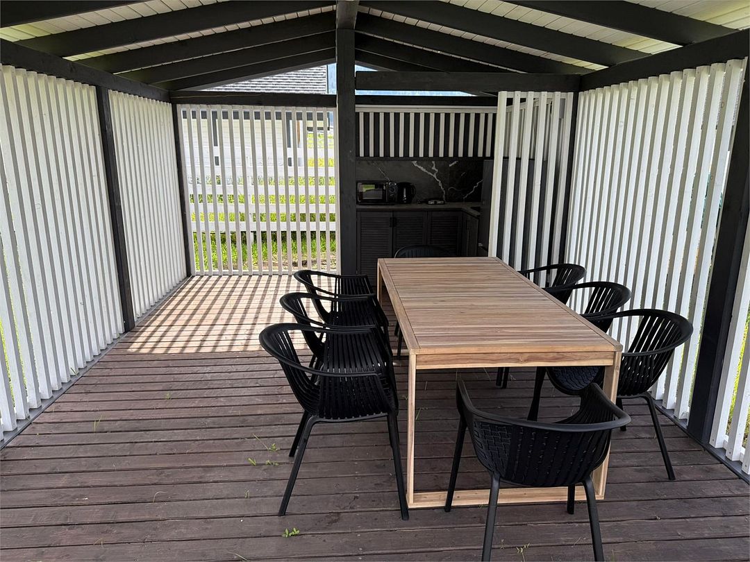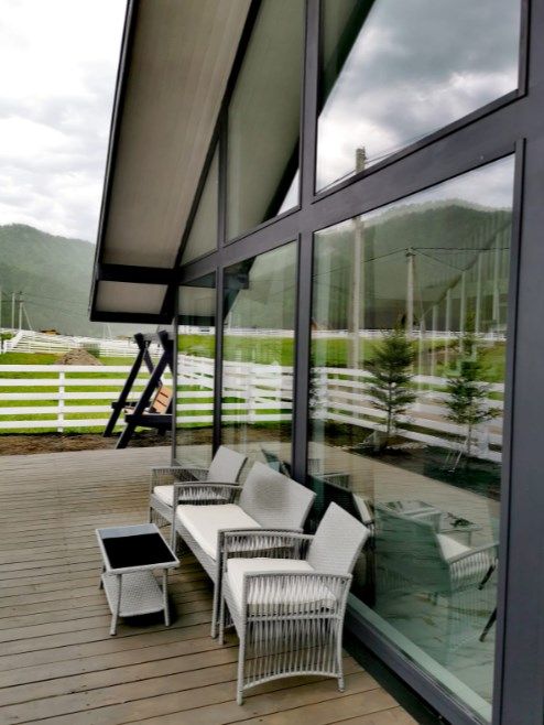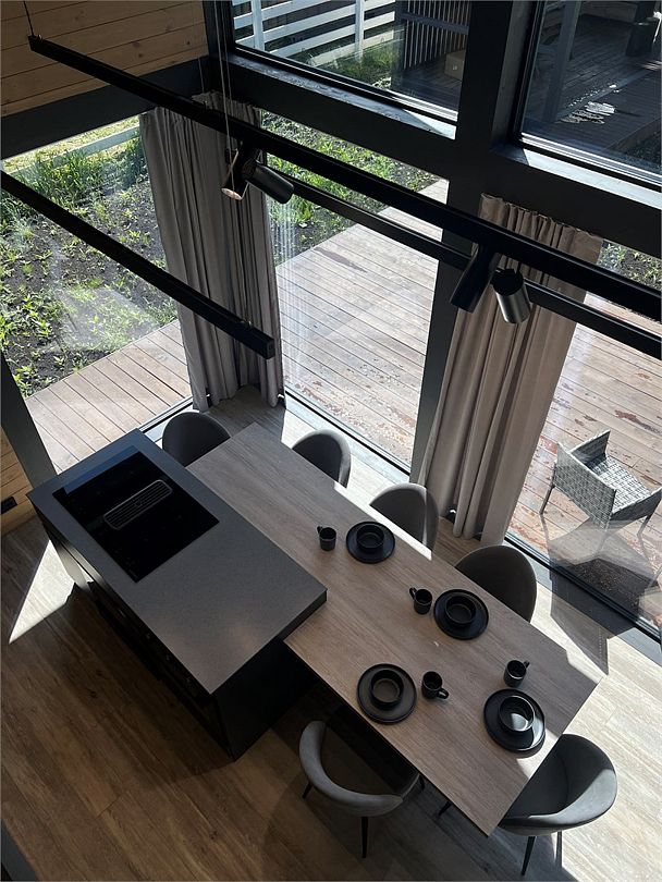 Комплекс включает в себя стильные двухэтажные коттеджи, у каждого есть собственный огороженный участок. В домах имеется все необходимое как для краткосрочного, так и для длительного проживания: объединенная с гостиной кухня, оборудованная техникой и посудой, уютные спальни, ванная комната с душевой кабиной, феном и туалетные принадлежностями. В каждом коттедже своя терраса, откуда открываются красивые виды. Для любителей мяса на углях на участке оборудована мангальная зона и беседка, на некоторых территориях имеются качели и установлены банный чан.