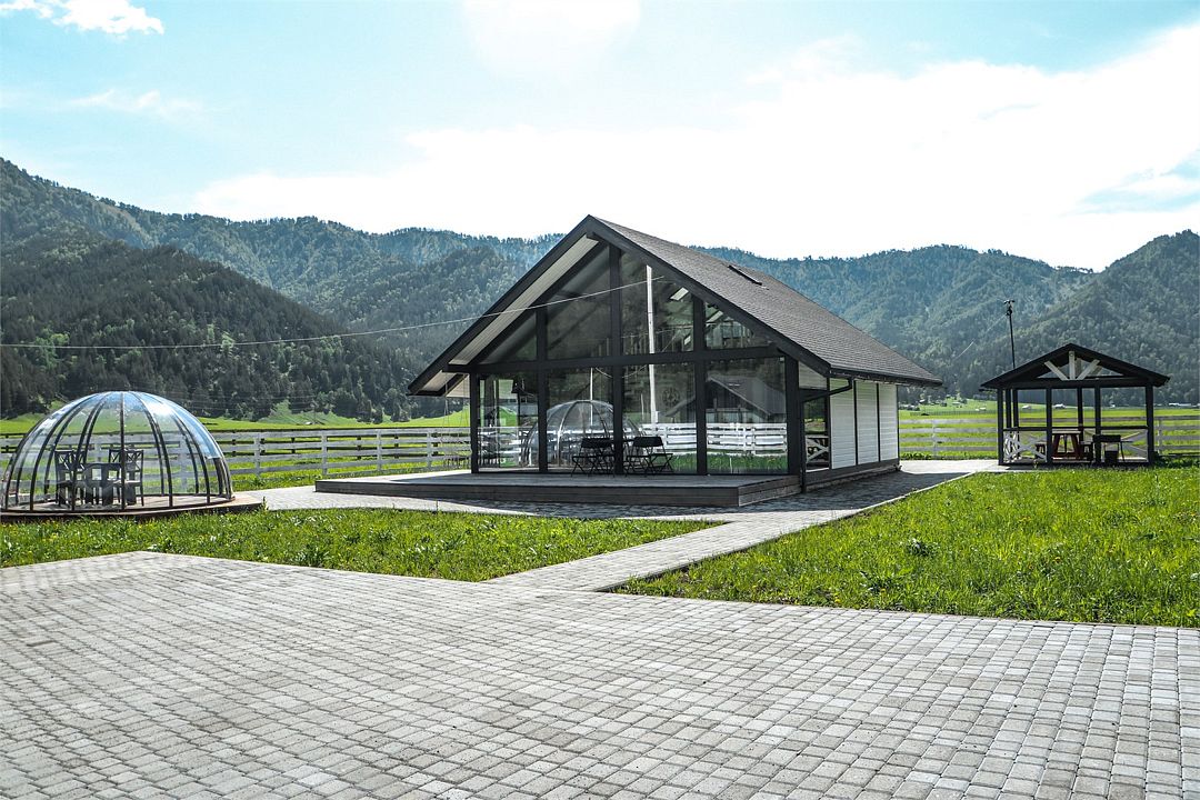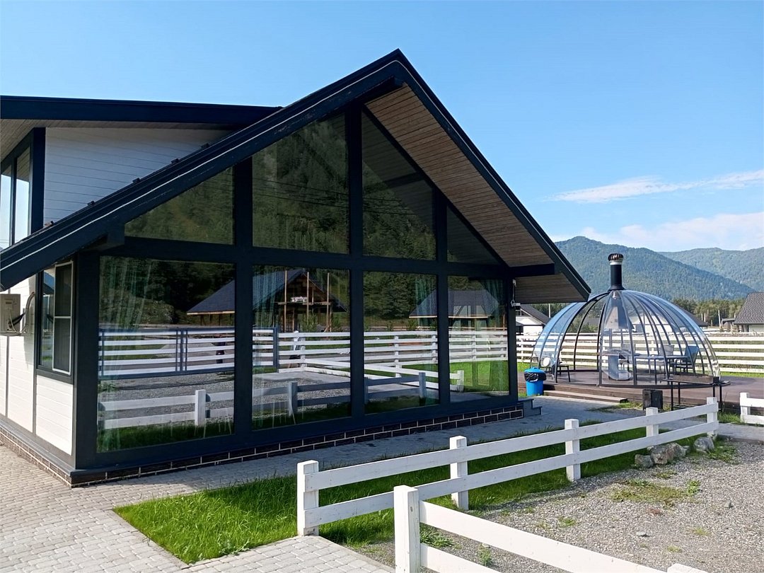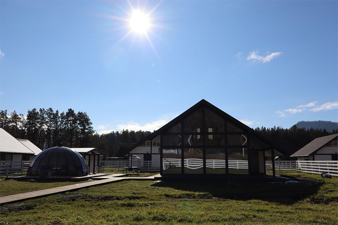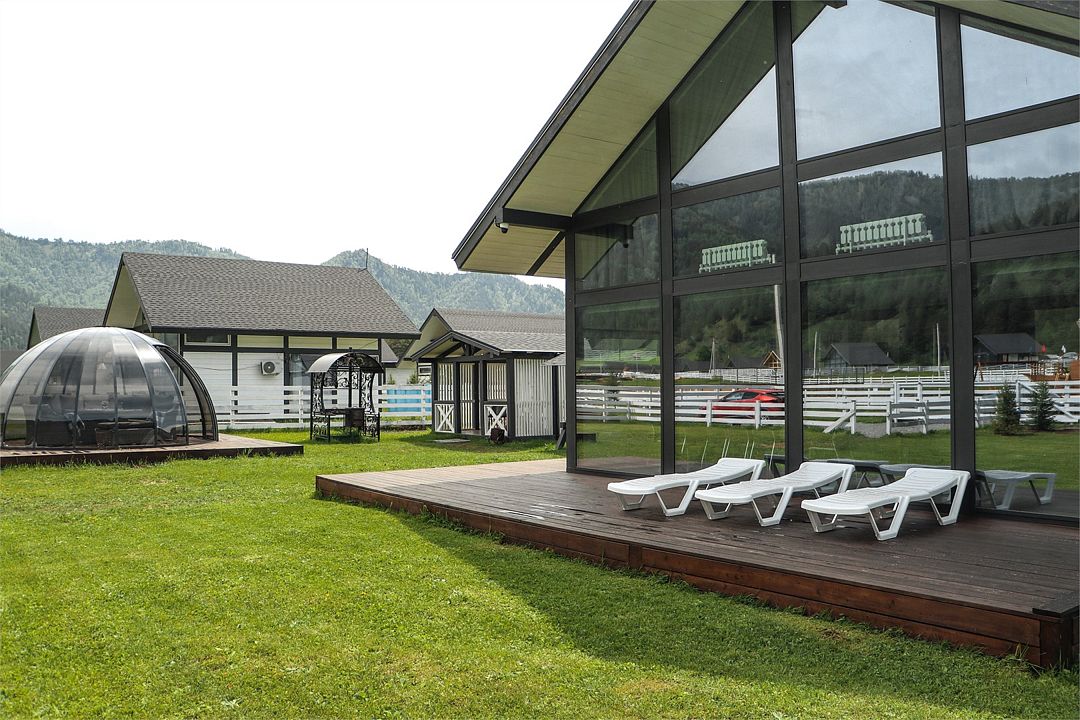 На территории коттеджного поселка работает ресторан «Гриль Хаус Техас», рассчитанный на 70 гостей, в меню – европейская и местная алтайская кухня. К услугам путешественников – подогреваемый бассейн, русская баня на дровах, дети весело проведут время на игровой площадке. Желающие могут отправиться на конные прогулки, покататься на квадроциклах или арендовать автомобиль для поездок по окрестностям.