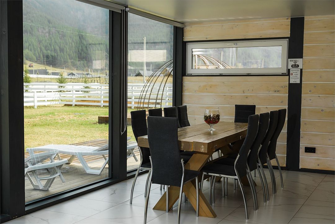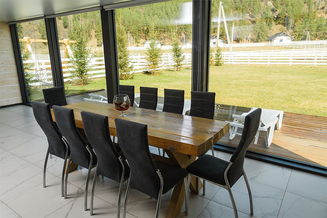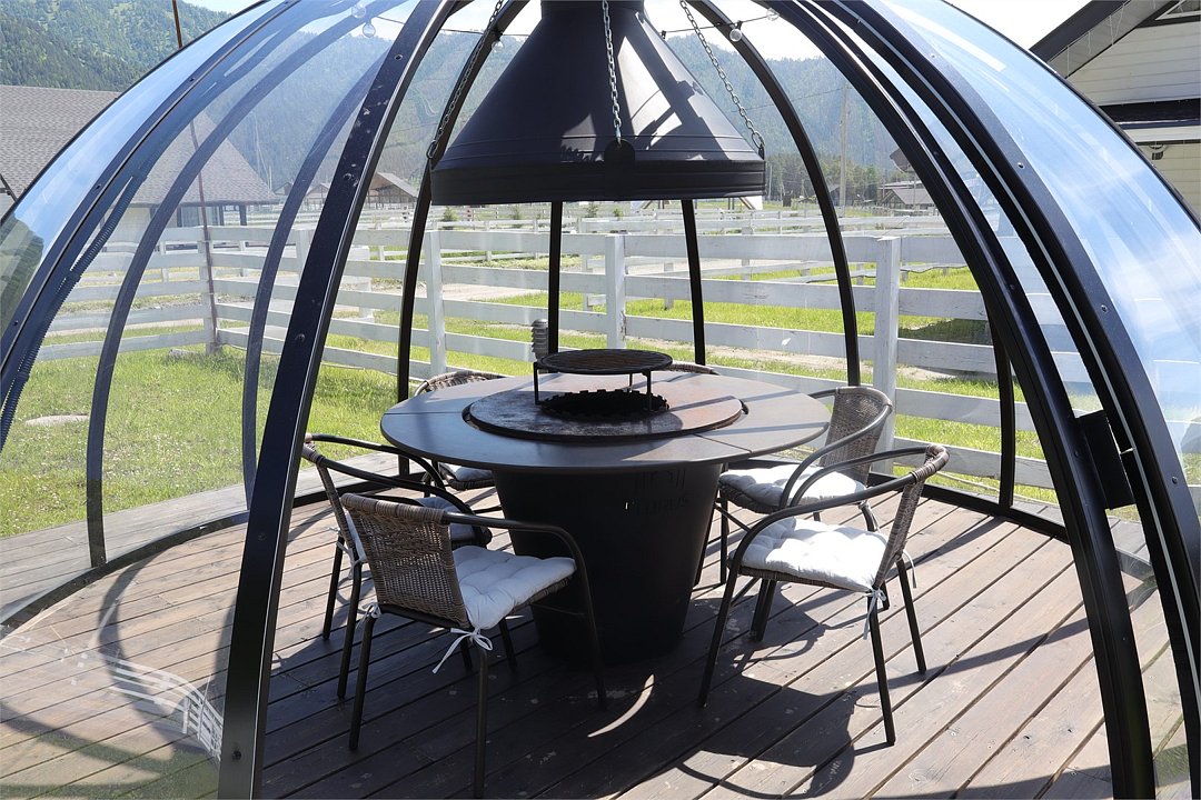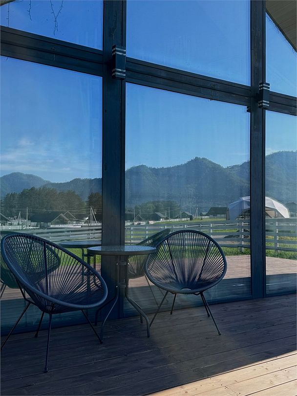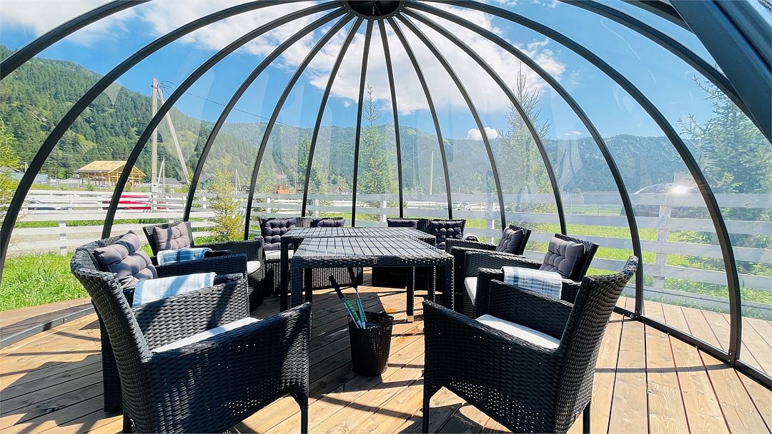 На территории коттеджного поселка работает ресторан «Гриль Хаус Техас», рассчитанный на 70 гостей, в меню – европейская и местная алтайская кухня. К услугам путешественников – подогреваемый бассейн, русская баня на дровах, дети весело проведут время на игровой площадке. Желающие могут отправиться на конные прогулки, покататься на квадроциклах или арендовать автомобиль для поездок по окрестностям.