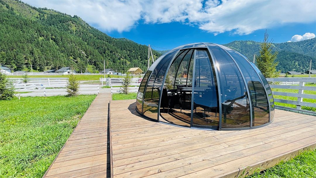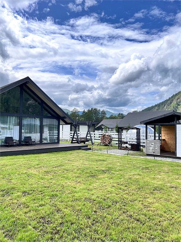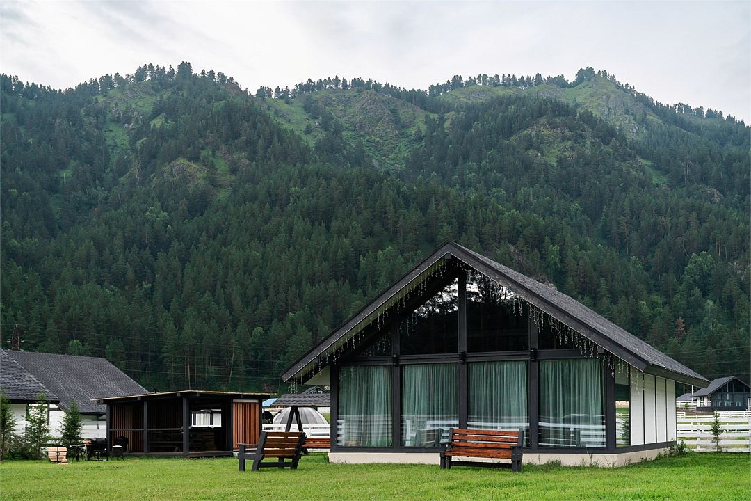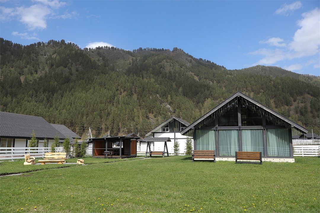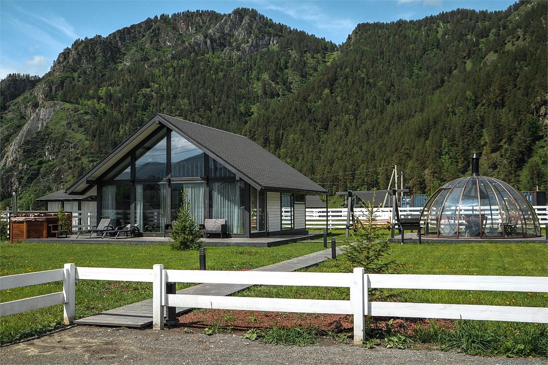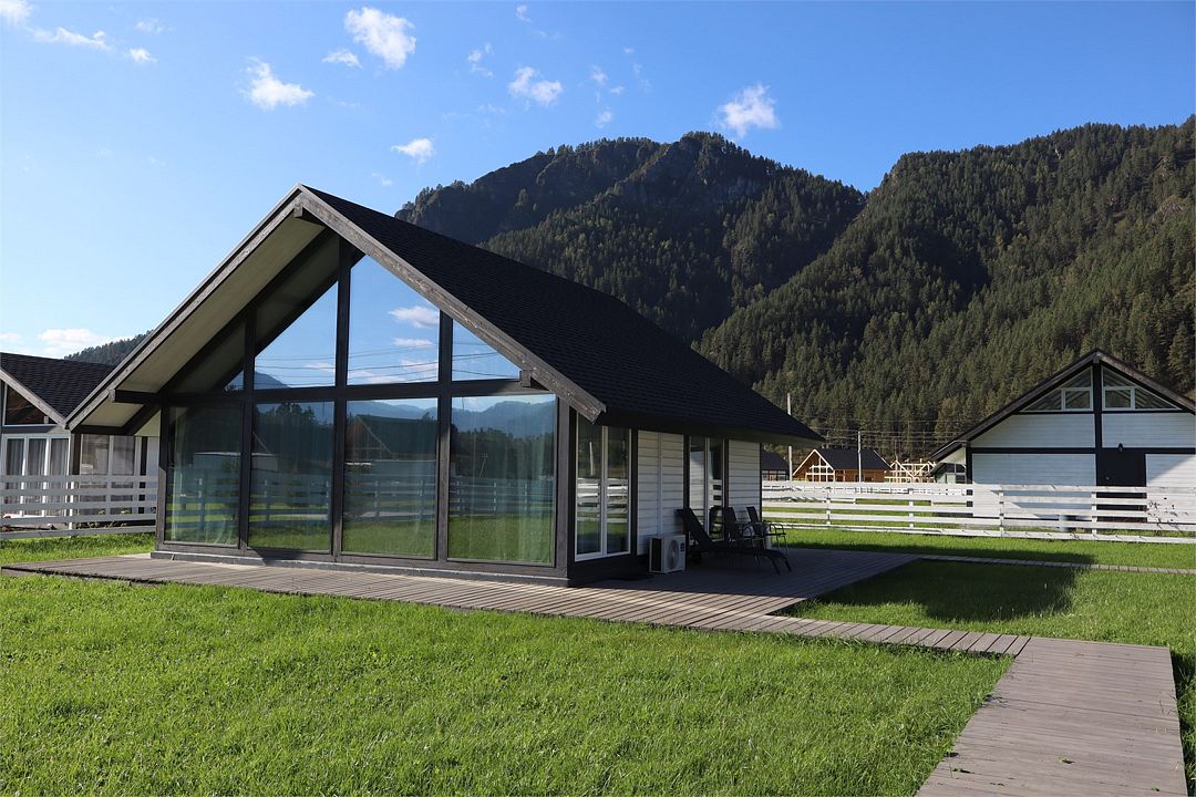 Альпинс Резидентс разместился в живописном месте на Чемальском тракте между всесезонным курортом Манжерок и Чемалом. Вокруг – горы, свежий воздух, красивая алтайская природа. У коттеджного поселка удобное местоположение, он находится в самом центре туристической зоны, отсюда легко добраться до левого берега Катуни и основных природных достопримечательностей, в 5 минутах езды на авто аквапарк, а до ближайшего аэропорта в Горно-Алтайске около часа пути.