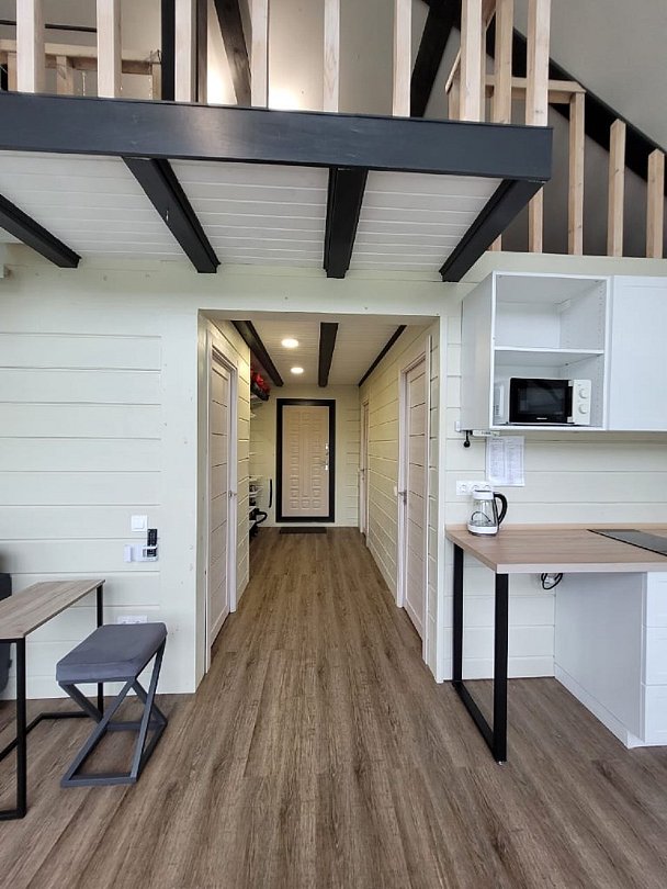 Двухэтажный коттедж, 90 кв.м. 1 Этаж: кухня-гостиная, санузел, спальня, входная зона +терраса. 2 этаж: спальняУслуги и удобства