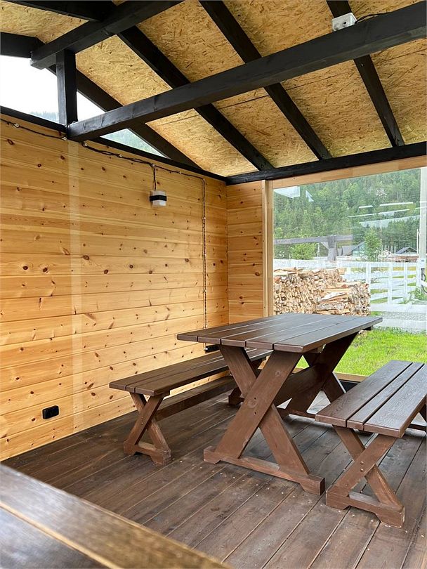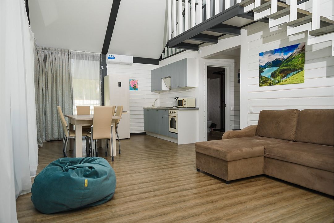 Двухэтажный коттедж, 90 кв.м. 1 Этаж: кухня-гостиная, санузел, спальня, входная зона +терраса. 2 этаж: спальня Чан оплачивается отдельно. Работает сезонноУслуги и удобства