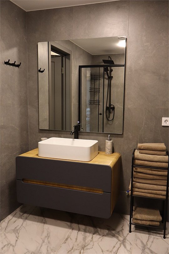 два телевизора, Wi-Fi, холодильник, кондиционер, фен, плита для приготовления пищи, кофемашина, микроволновая печь, утюг, душевая кабина, теплый пол, банные полотенца, гигиенические средства, две двуспальные кровати, гладильная доска, детская кровать, стулья, вешалки, чайник, унитаз, раковина, вид во двор, кухонная посуда, стол, сушилка для белья, диван-кровать, раскладной диван, вид на горы, можно с питомцамиВ коттедже