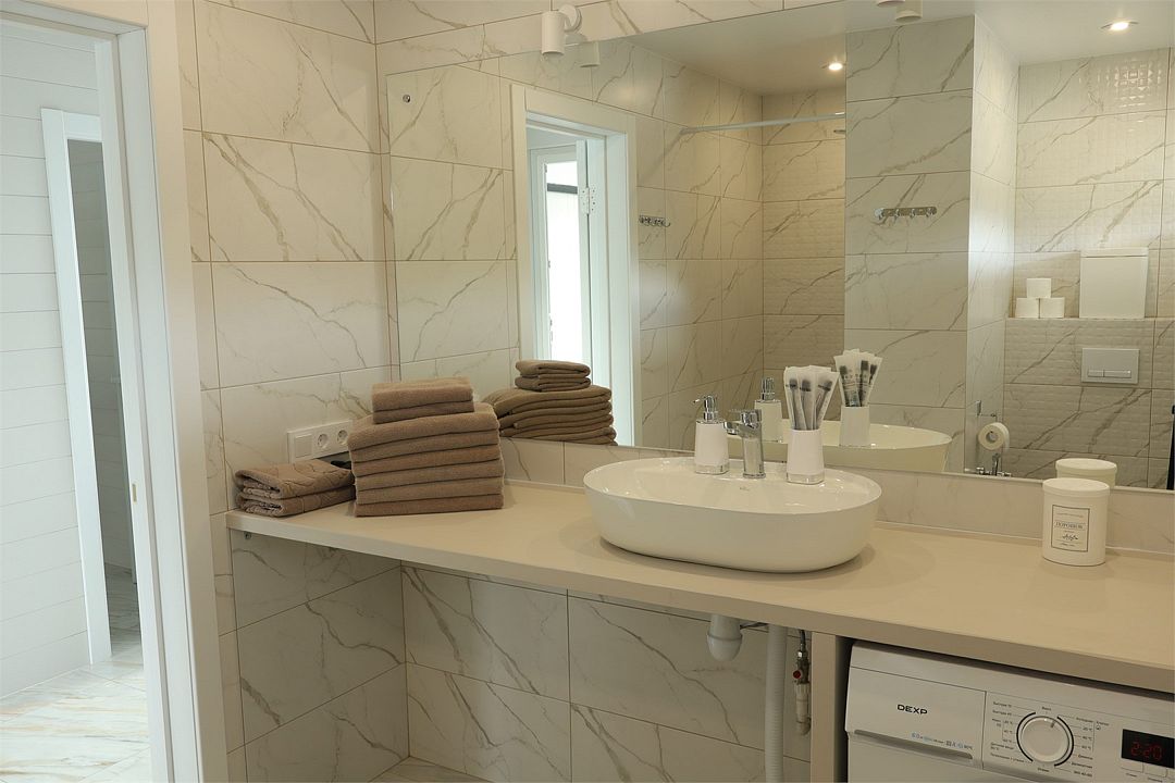 телевизор, Wi-Fi, холодильник, кондиционер, фен, плита для приготовления пищи, микроволновая печь, утюг, душевая кабина, теплый пол, банные полотенца, гигиенические средства, две двуспальные кровати, гладильная доска, стулья, вешалки, стиральная машина, чайник, унитаз, раковина, вид во двор, стол, сушилка для белья, раскладной диван, вид на горы, духовка, можно с питомцамиВ коттедже