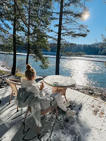 Сквозь окна открывается завораживающий вид на величественную реку Катунь, чьи воды плавно струятся, отражая небесную синеву и нежные облака. Шум воды создаёт успокаивающий фон, который, словно древняя мелодия, убаюкивает мысли и наполняет лёгкостью.