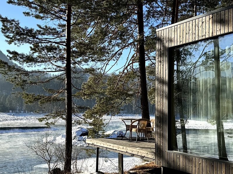 Отдельно стоящая вилла с лучшим видом на реку Катунь. Максимальная близость к реку и панорамные окна в пол позваляют насладиться красотой реки и окружающими отель горами.