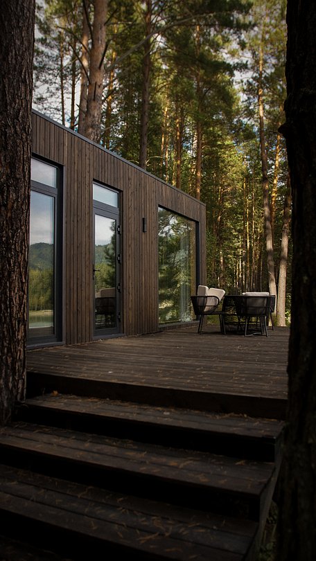 Уютный, отдельностоящий, благоустроенный дом с панорамными окнами, видом на реку. В доме спальня-гостиная с большой двуспальной кроватью и диваном, ванная комната, теплый пол, панорамные окна. На фото представлены реальные фото домов сейчас и рендеры, в ближайшее время будут поставлены террасы и благоустроены дома согласно проекту.