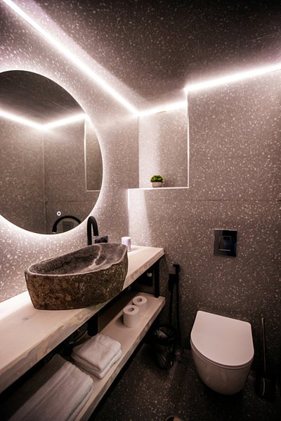 Люкс для новобрачных с панорамными окнами, террасой с мангальной зоной для комфортного проживания и полноценного отдыха.