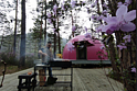 В глэмпинге создана территория осознанного отдыха, где можно переключить внимание от суеты на бесконечное течение жизни природы. Под кронами сосен располагаются 6 купольных номеров с панорамными окнами, ухоженная береговая линия и открытая площадка для отдыха или занятия йогой.
