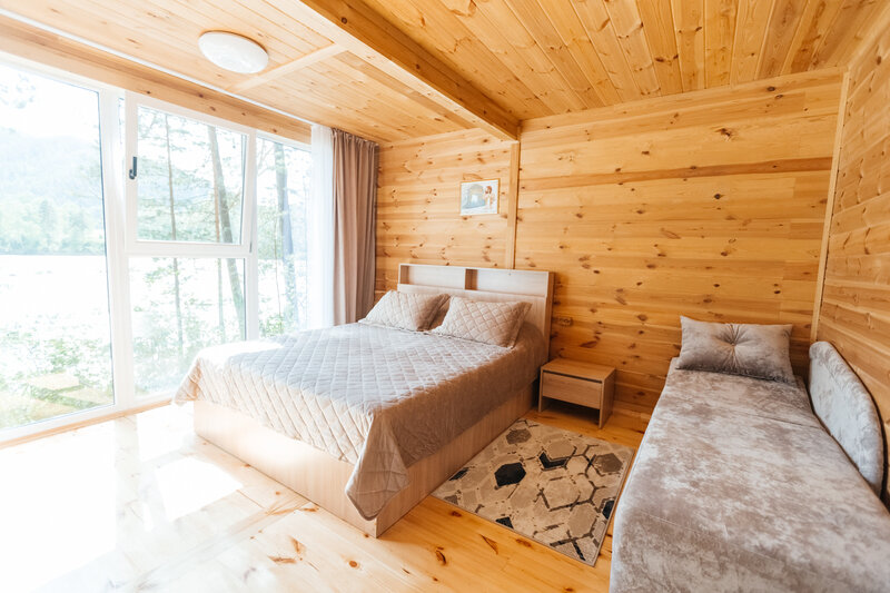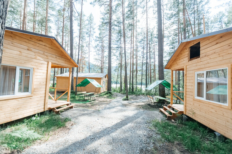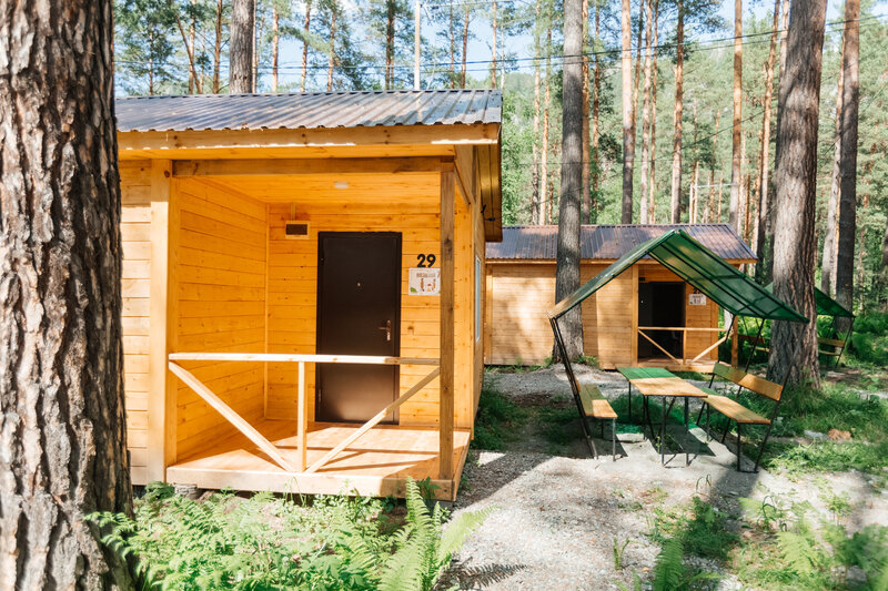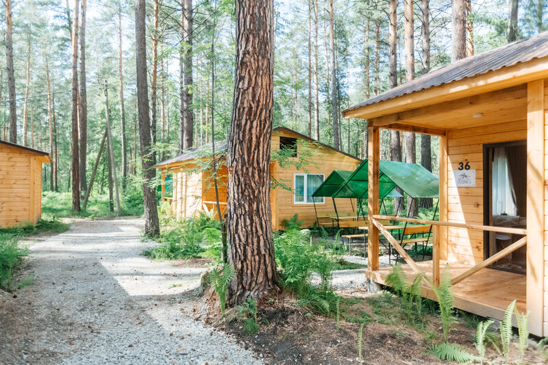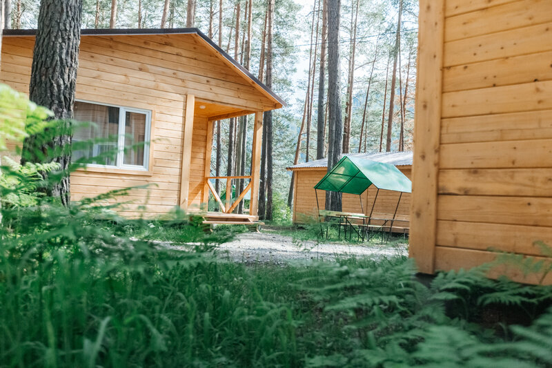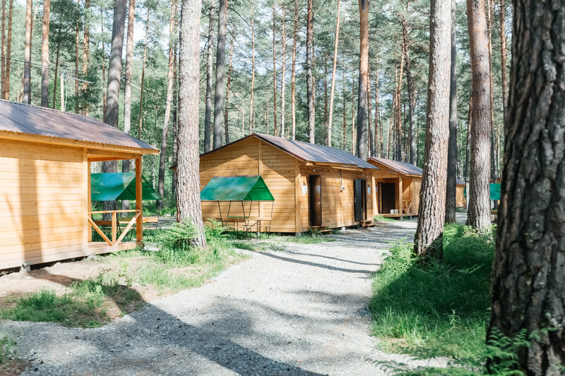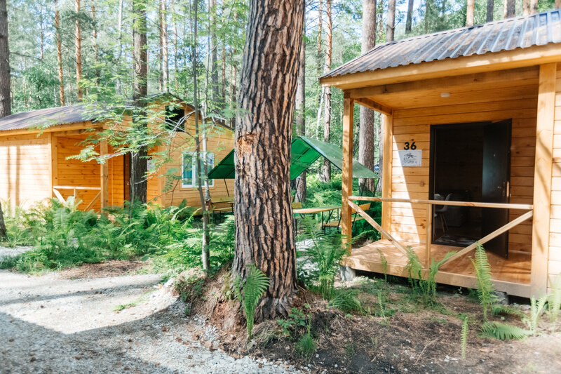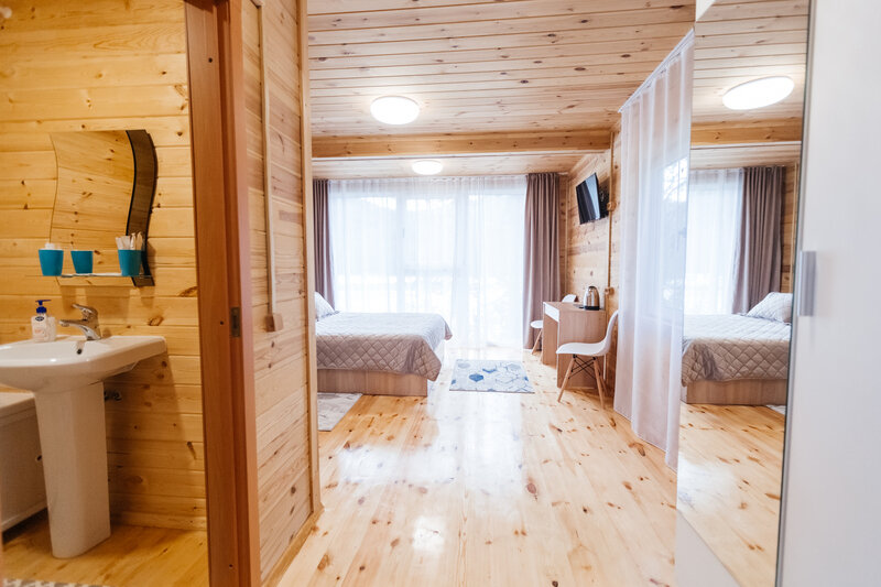 Для размещения гостей подготовлены однокомнатные дома. Внутри каждого имеется двуспальная кровать, телевизор, шкаф, холодильник и чайник, а также набор посуды. В ванной комнате гости найдут ванну, раковину, фен и полотенца. Все домики оборудованы индивидуальными бесплатными беседками, а у некоторых есть еще и собственная терраса.