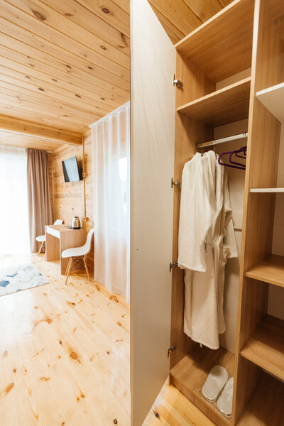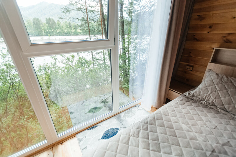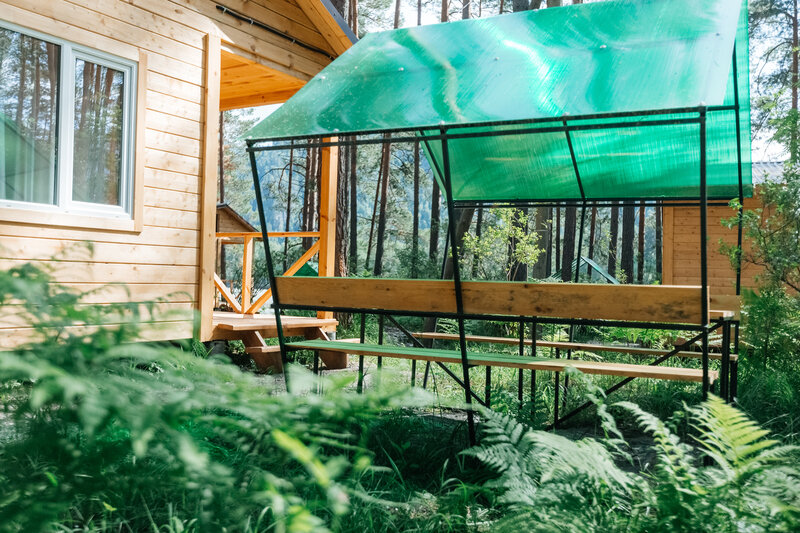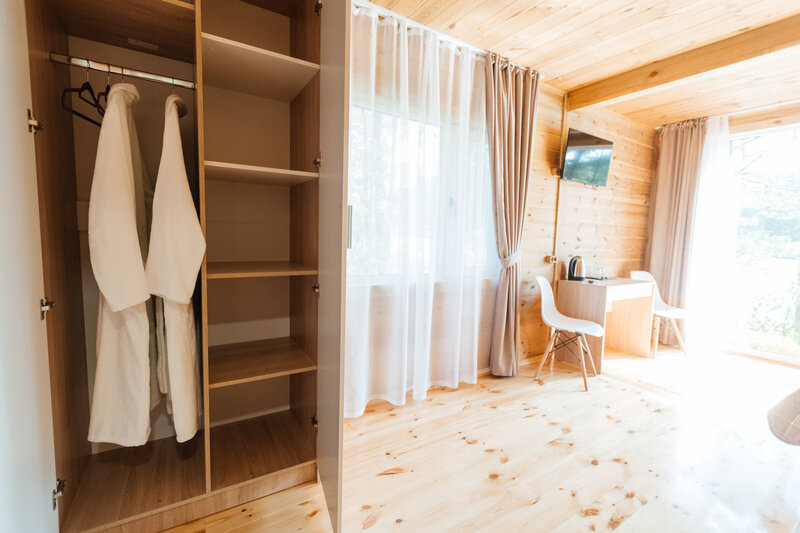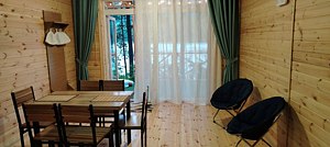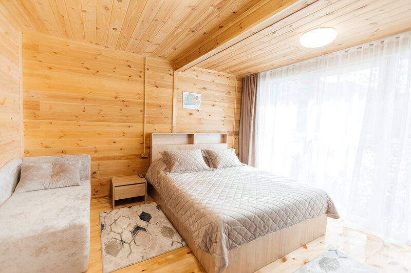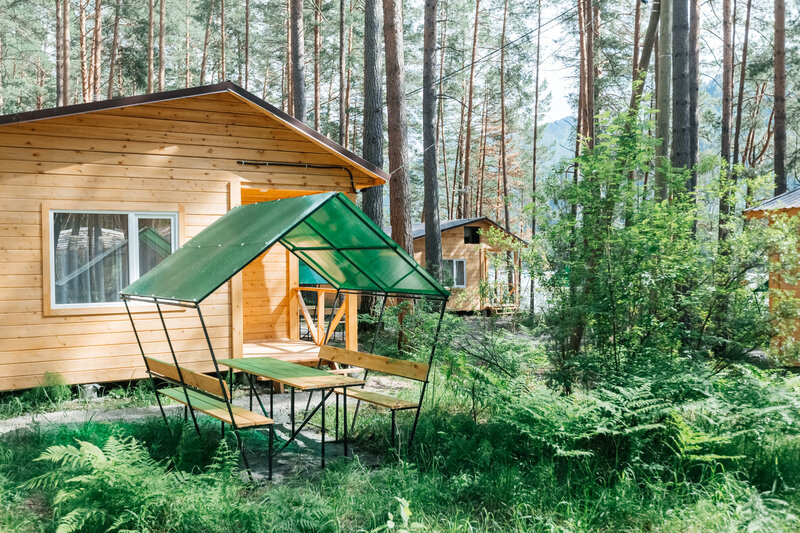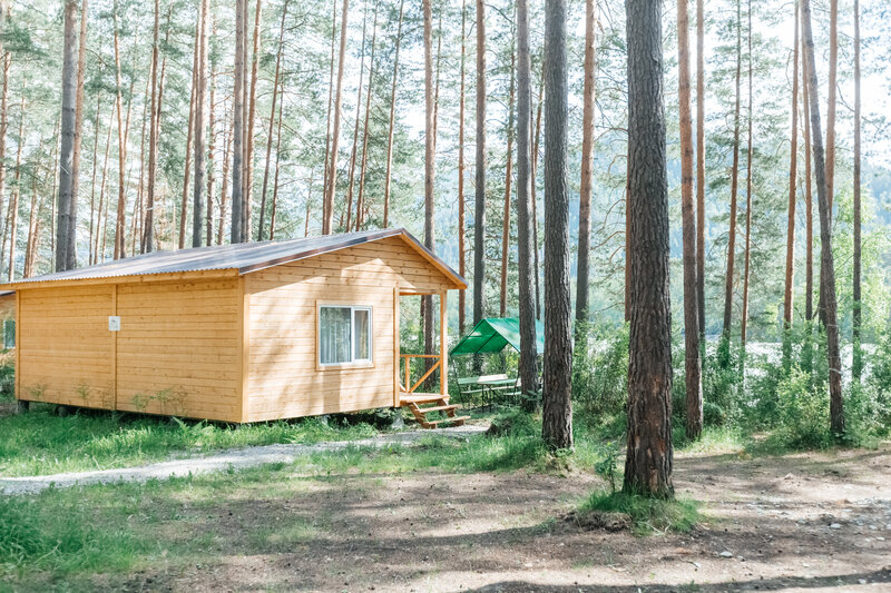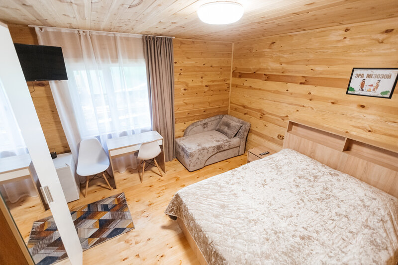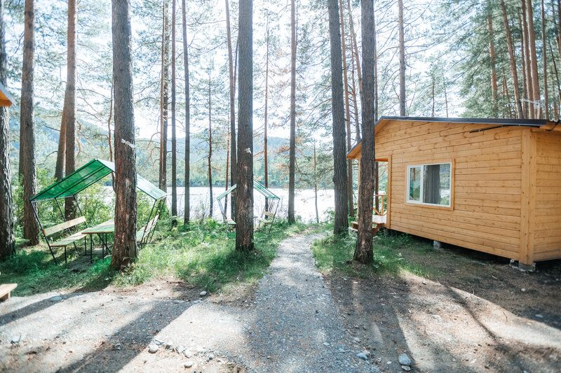 Для размещения гостей подготовлены однокомнатные дома. Внутри каждого имеется двуспальная кровать, телевизор, шкаф, холодильник и чайник, а также набор посуды. В ванной комнате гости найдут ванну, раковину, фен и полотенца. Все домики оборудованы индивидуальными бесплатными беседками, а у некоторых есть еще и собственная терраса.
