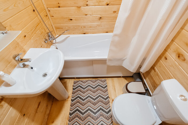 В доме: односпальный диван, два стула, махровые халаты на двух гостей. Санузел: ванна, четыре полотенца. К домику прилагается индивидуальная бесплатная беседка.