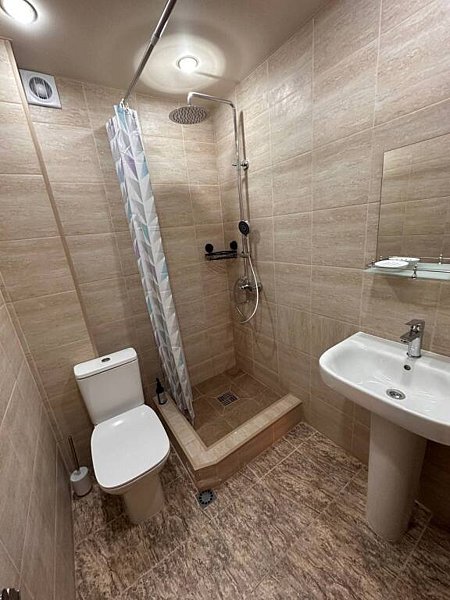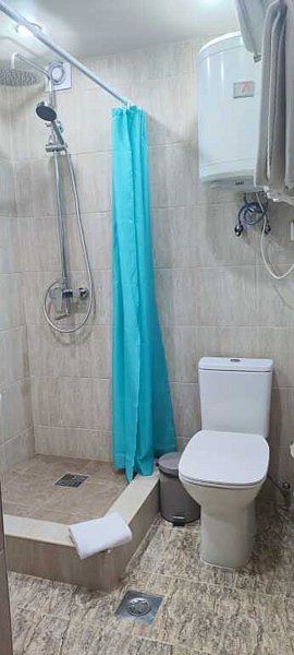 одна двуспальная кровать, тумбочка, шкаф, комод, с/у, душ, ТВ