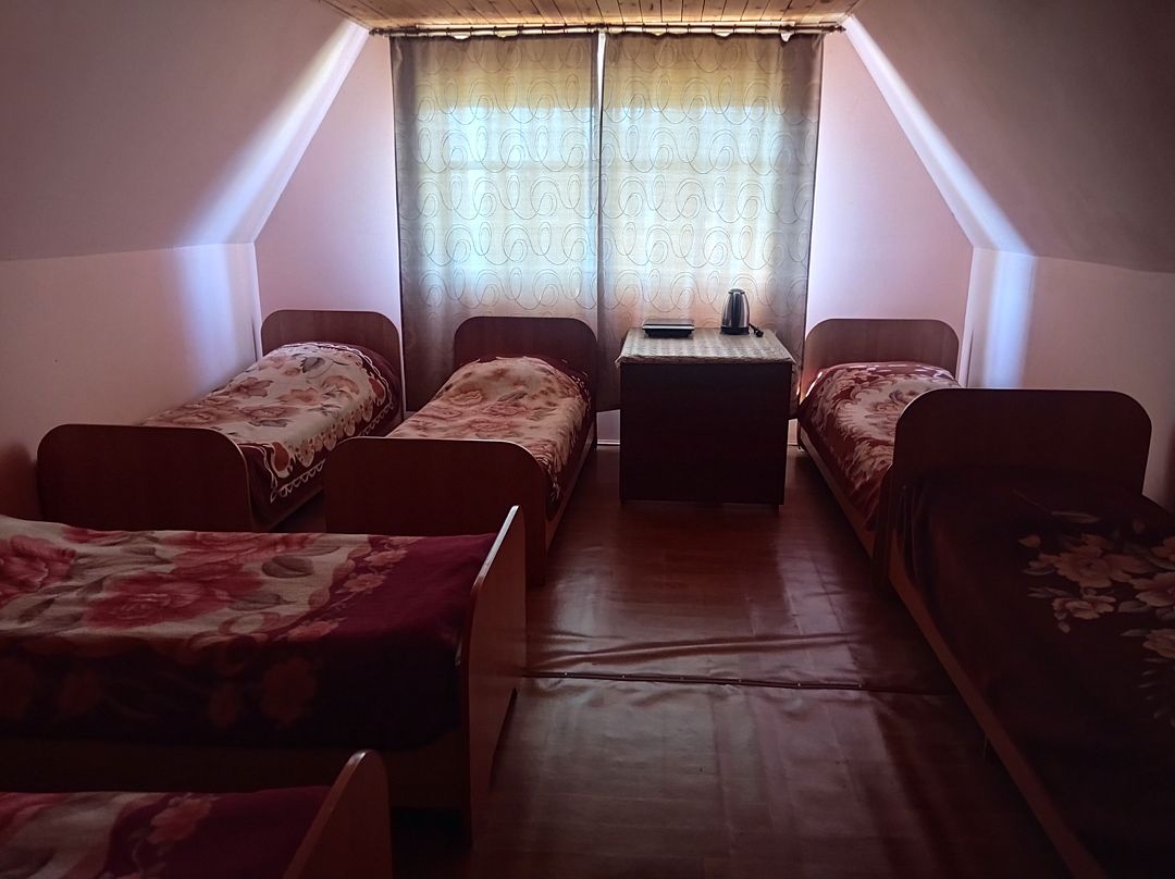 Просторный шестиместный номер эконом-класса занимает второй этаж небольшого корпуса на три номера. Конфигурация спальных мест: 6 односпальных кроватей.
