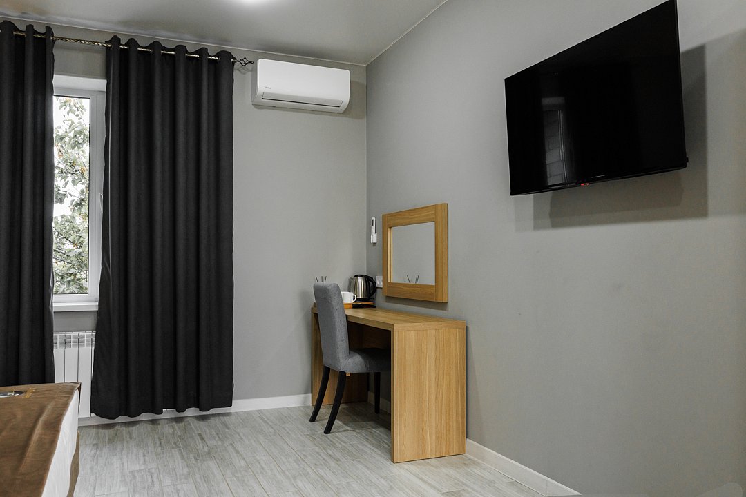 Уютный номер “Стандарт” - идеальное сочетание удобства и доступности! Насладитесь полноценным отдыхом в просторном номере с удобной кроватью, современной ванной комнатой и всеми необходимыми удобствами: бесплатным Wi-Fi, телевизором и кондиционером. Идеальный выбор для деловых поездок и незабываемых выходных! Забронируйте свой “Стандарт” уже сегодня и почувствуйте гостеприимство!