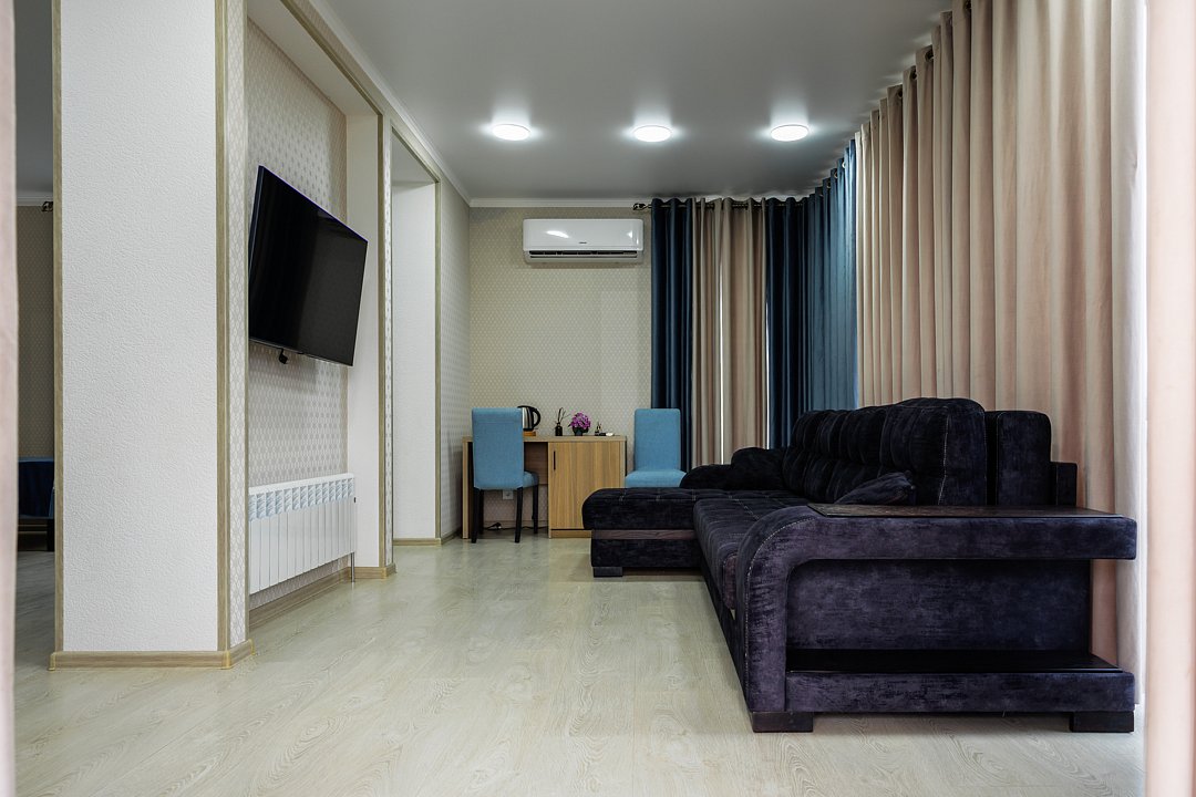 Погрузитесь в атмосферу изысканности и элегантности в нашем номере “Люкс”! Насладитесь простором, стильным интерьером и безупречным сервисом. В вашем распоряжении: просторная гостиная, уютная спальня с кроватью king-size, а также премиальные удобства и захватывающий вид из окна. Идеальный выбор для тех, кто ценит безупречный отдых и незабываемые впечатления! Забронируйте свой “Люкс” прямо сейчас и ощутите превосходство!