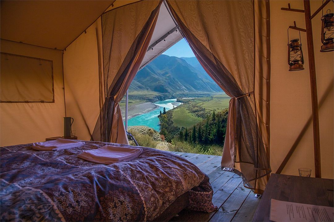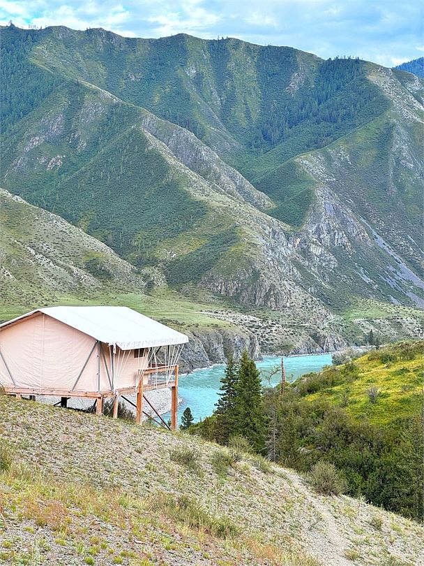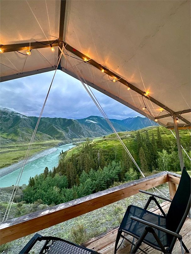 Тент-дом в Инегене с видом на гору и реку Катунь