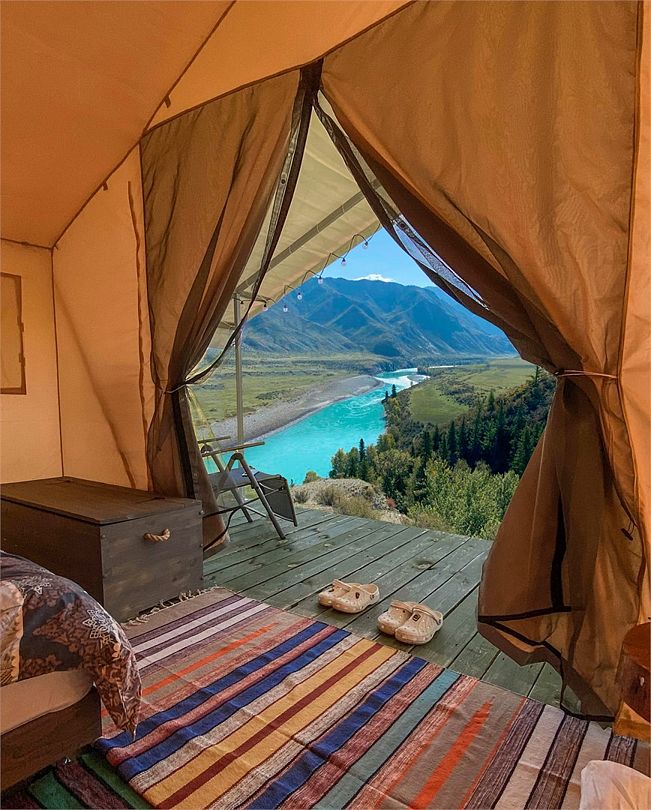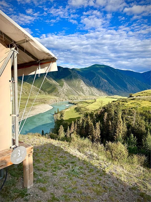 В уютных трехместных тент-домах глэмпинга каждый сможет насладиться атмосферой уединения и комфорта. С террасы открывается панорамный вид на величественные горы и бурлящую реку, что делает утренний кофе особенно приятным. Завтраки здесь не просто вкусные — они наполнены заботой и разнообразием: от теплых каш до ароматной выпечки, каждая деталь продумана, чтобы зарядить энергией на весь день.