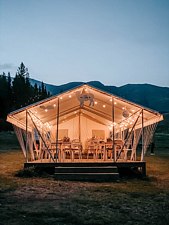 Для проведения корпоратива можно забронировать весь глэмпинг. По запросу можно изменить меню под ваши предпочтения, организовать разнообразные прогулки, сплавы и другие мероприятия.