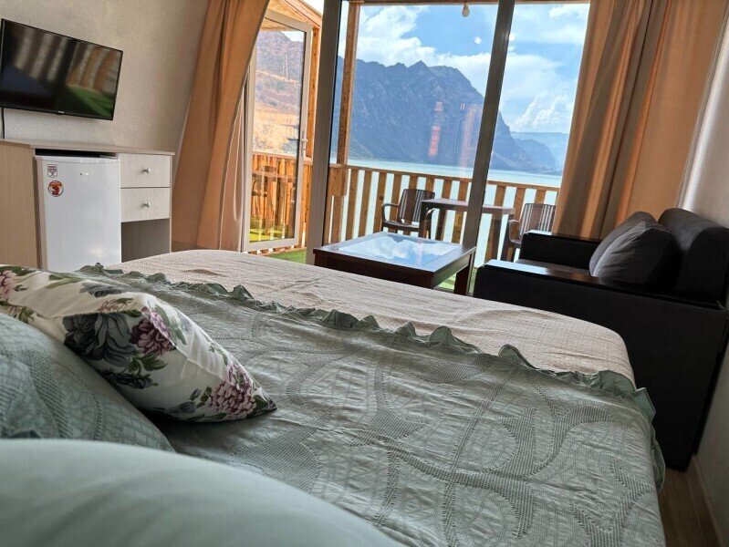 Семейный отдыхДостоинстваОтлично организованный отдых на природе! Гостеприимные хозяева, уютные домики с видом на водохранилище и горы, все удобства (кондиционер, холодильник, чайник, микроволновка) и вкусная еда на территории. Прямо на пирсе можно арендовать сапы, катамаран или заказать прогулку на катере.