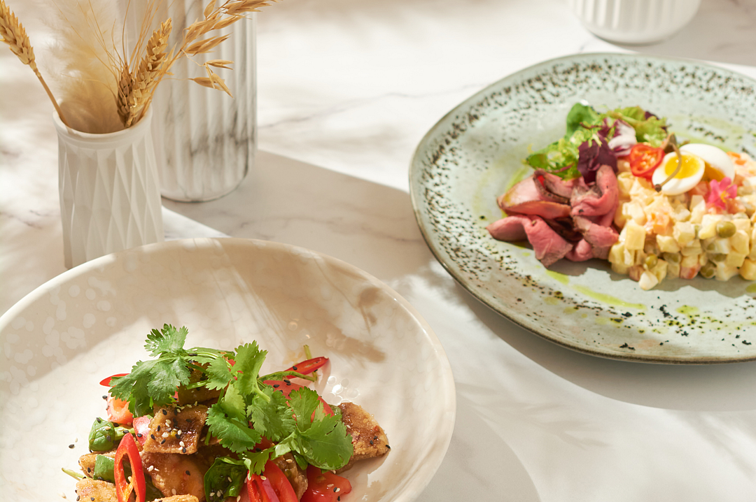 Вкусная еда в ресторане, все свежее и вкусно приготовлено.