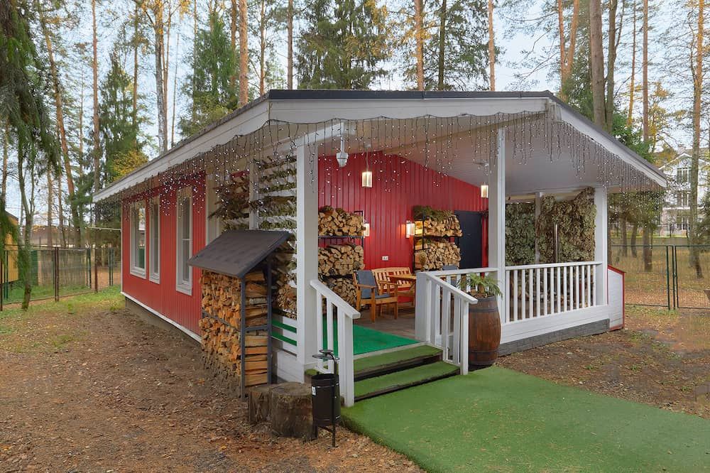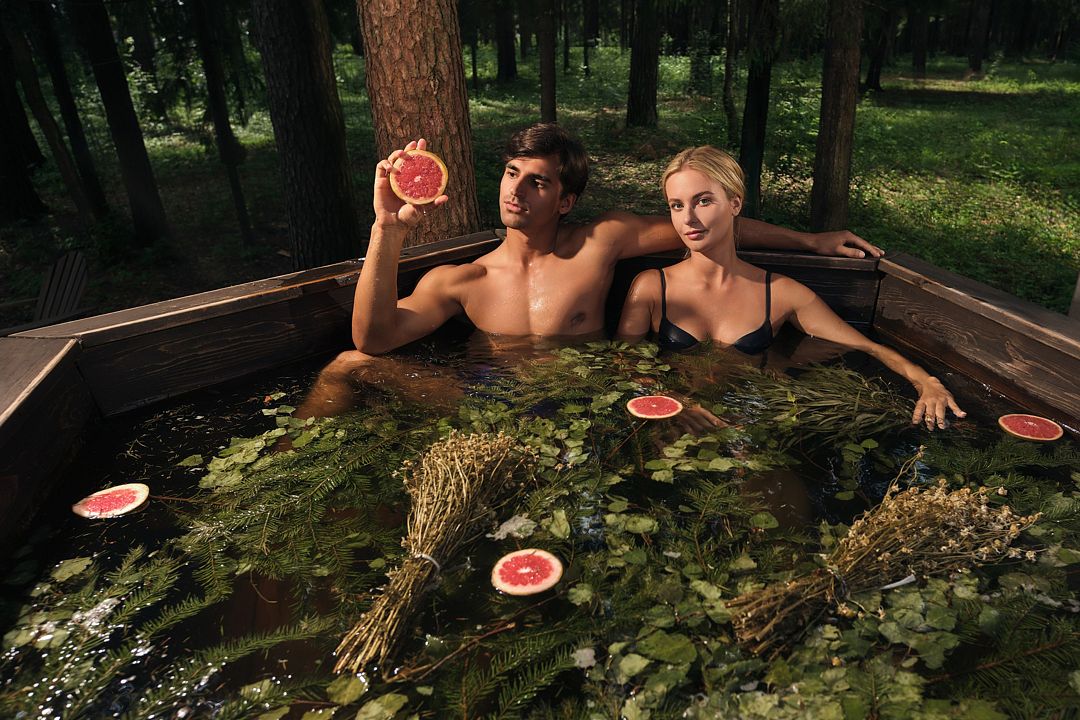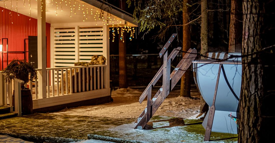 В теплое время года гости могут наслаждаться кедровой купелью с холодной родниковой водой, доступной при аренде красной скандинавской бани. Эта услуга включена в стоимость для компании до четырех человек, с возможностью добавить дополнительного гостя за отдельную плату.