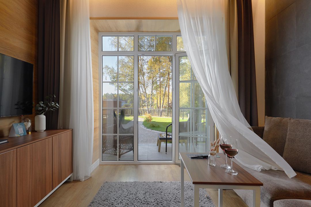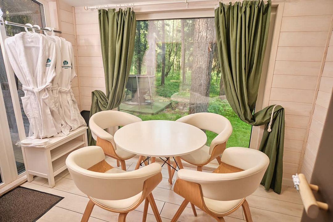 - Посещение сауны на открытом воздухе с видом на лес (панорамная сауна с раздевалками, феном, предоставляются халаты) до 28.12.2025