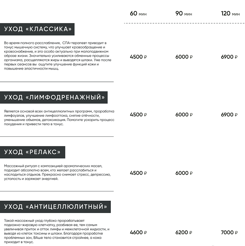Спа-процедуры и уходы для тела