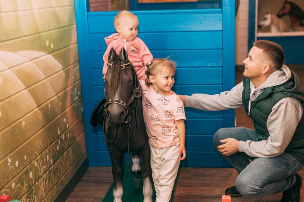 Когда родители могут заняться верховой ездой, а дети маленькие будут веселится в клубе с аниматорами. -
