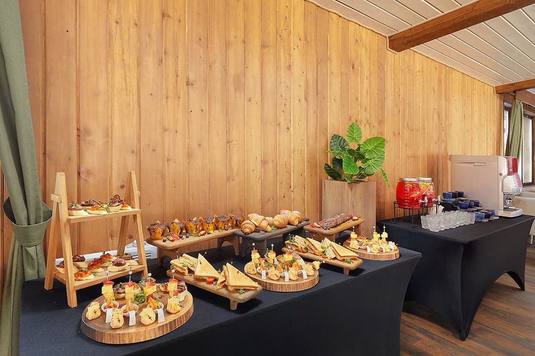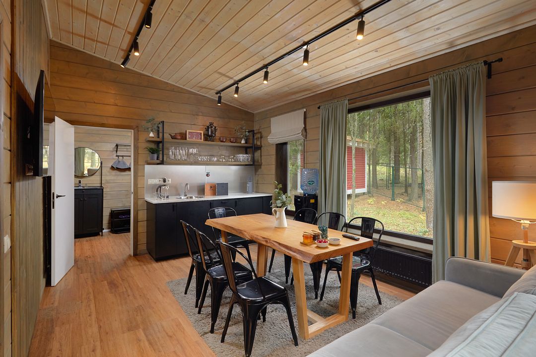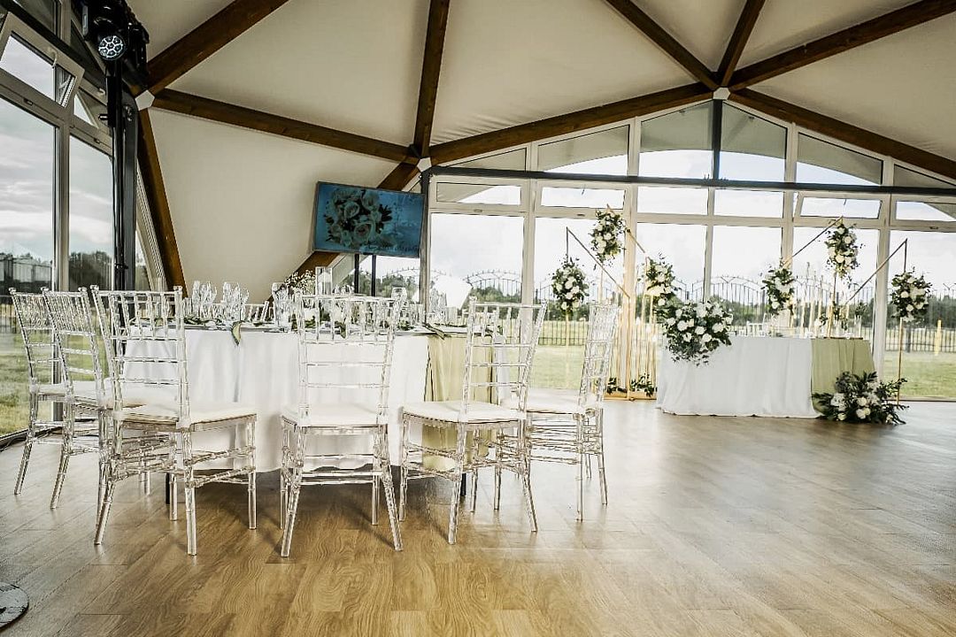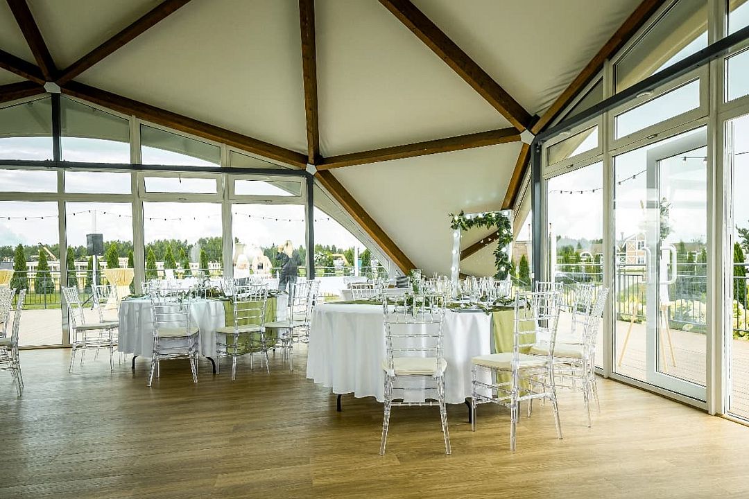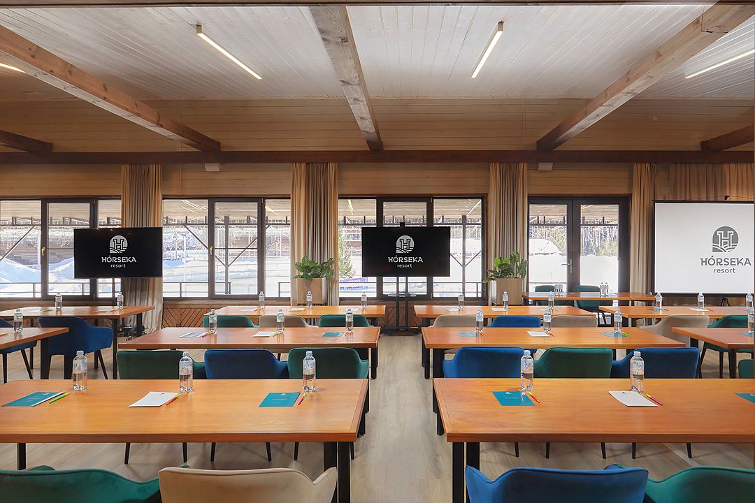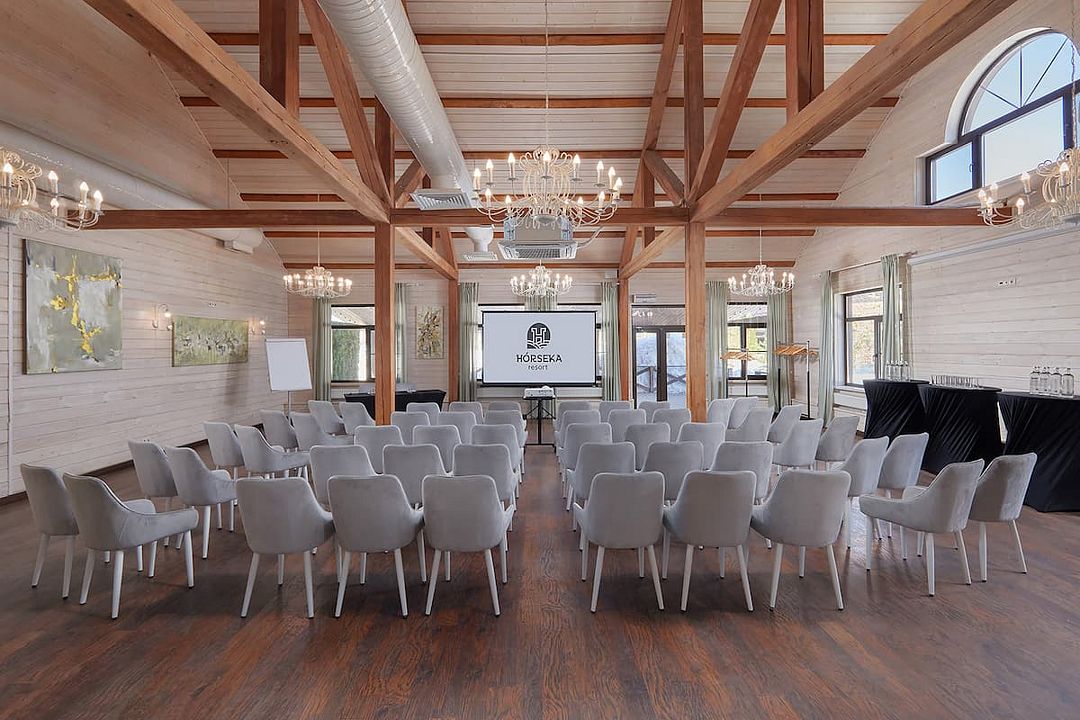 Зал рассчитан на девяносто гостей, что делает его отличным выбором для небольших и средних компаний. В зале есть бесплатный Wi-Fi, а из окон открывается прекрасный вид на лес, что добавляет очарования любому мероприятию.