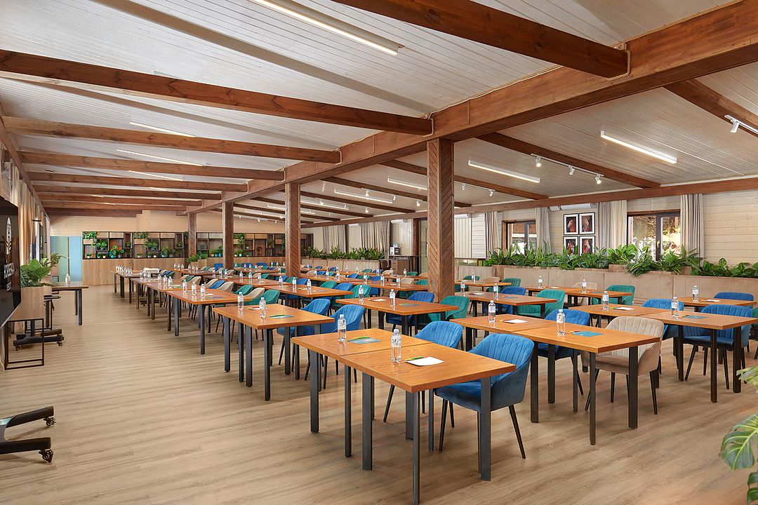 Банкетный зал «Аллюр» создает атмосферу уюта и гармонии благодаря использованию натуральных материалов. Это стильное и комфортное пространство идеально подходит для проведения мероприятий любого формата, включая конференции и семейные праздники.