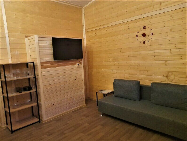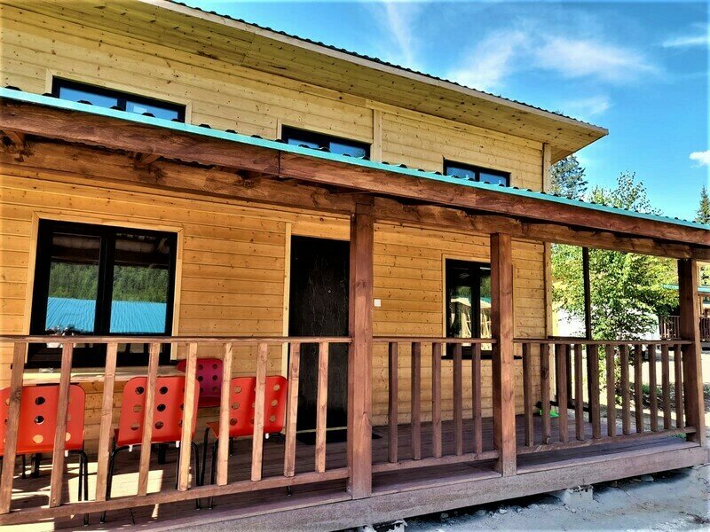 Гости туркомплекса могут с комфортом разместиться в уютных номерах в двухэтажном круглогодичном коттедже, на первом этаже которого есть большой зал с обеденным столом, зона отдыха с мягкой мебелью и телевизором, оборудованная кухня для самостоятельного приготовления пищи. В цокольном этаже коттеджа имеется эконом вариант проживания в номерах для 2-4х человек с туалетом и душем на этаже.