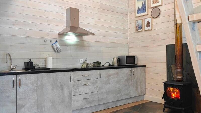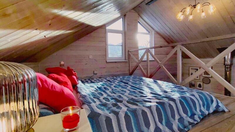 Одна двуспальная кровать, одна диван-кроватьВ мини-доме