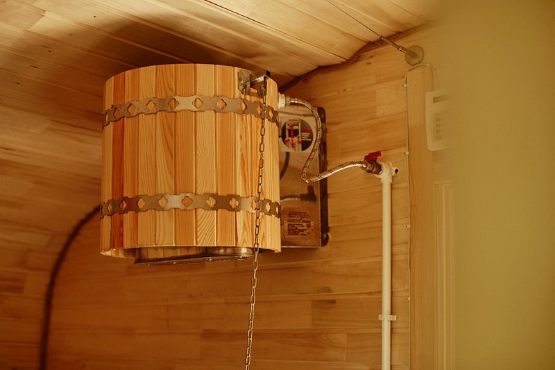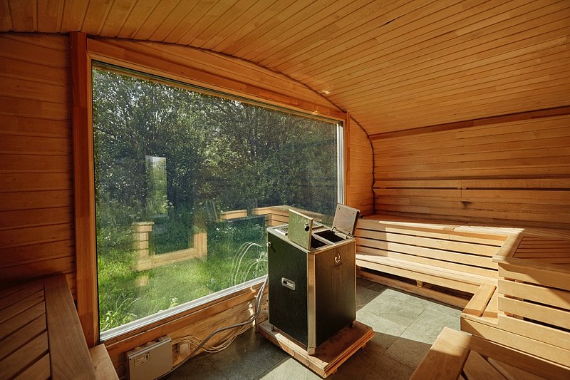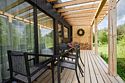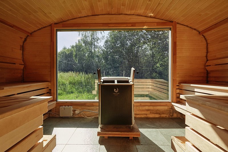 На террасе рядом с баней расположился банный чан, который приглашает гостей окунуться в теплую воду, наполненную восхитительными ароматами пихты и грейпфрута. Это укромное местечко, где можно по-настоящему насладиться природой и расслабиться от городской суеты.