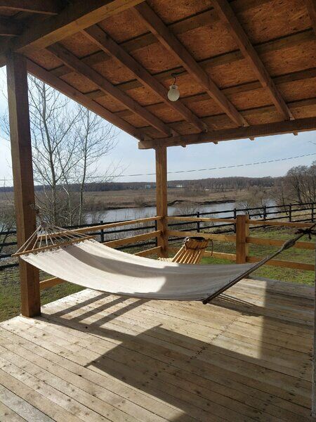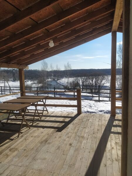 В холодное время года в доме тепло и уютно, а за окном природа как она есть: бурлит река, пахнет лесом. В жаркое время прохлада в доме спасает от жары, на улице кружит голову запах луговых трав, а по утрам завораживает пение птиц, мелькают стрижи и кружит коршун, ночами ухает филин.
