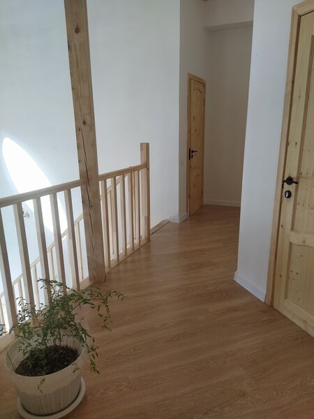 Гармония есть во всем. Естественные формы природы радуют глаз — территорию окружает лес, поля, а перед домом протекает река Пахра. Строительство и отделка коттеджа произведены с использованием максимального количества экологичных материалов — это позволяет восстановить энергетику посетителей и улучшить их самочувствие. Дизайн дома современный, минималистичный, здесь все продумано до мелочей и нет ничего лишнего, комфортно и легко дышится.