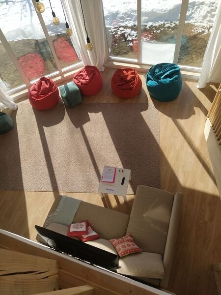 Планировка коттеджа, его вместимость позволяют использовать его как дом для йоги и проведения различных практик для небольших и средних групп.