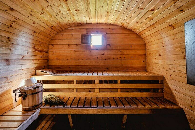 Одноразовые тапочки, полотенца, банные простыни, шапочки — все это прилагается. Веники предоставляются за дополнительную плату.