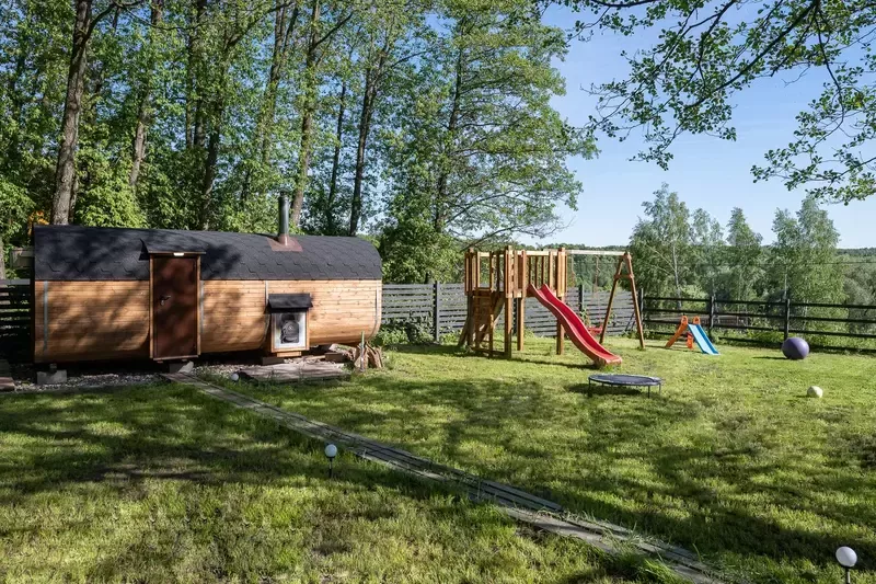 Шикарным дополнением к дому является баня с парилкой. Предусмотрены банные простыни, полотенца, тапочки, шапочки, веники. Есть зона для приготовления мяса с мангалом, шампурами, решетками, 5 кг березового угля идет в подарок. Летом можно посидеть на террасе, полюбоваться прекрасными видами, зимой насладиться теплом и потрескиванием дров в камине.